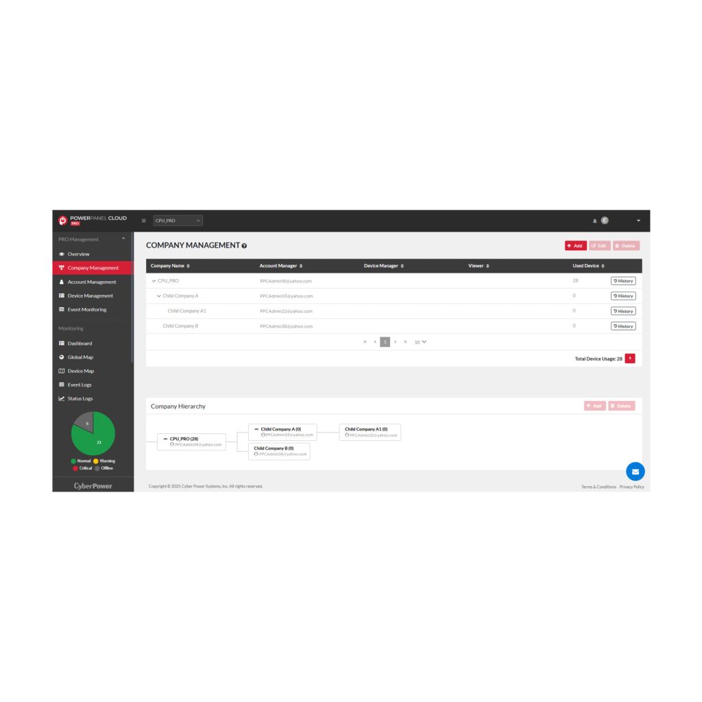 PowerPanel® Cloud Pro makes it easy to monitor an unlimited number of CyberPower UPS systems anywhere there is an internet connection. Now businesses are able to simplify power monitoring options to gain efficiency and reduce IT resources.