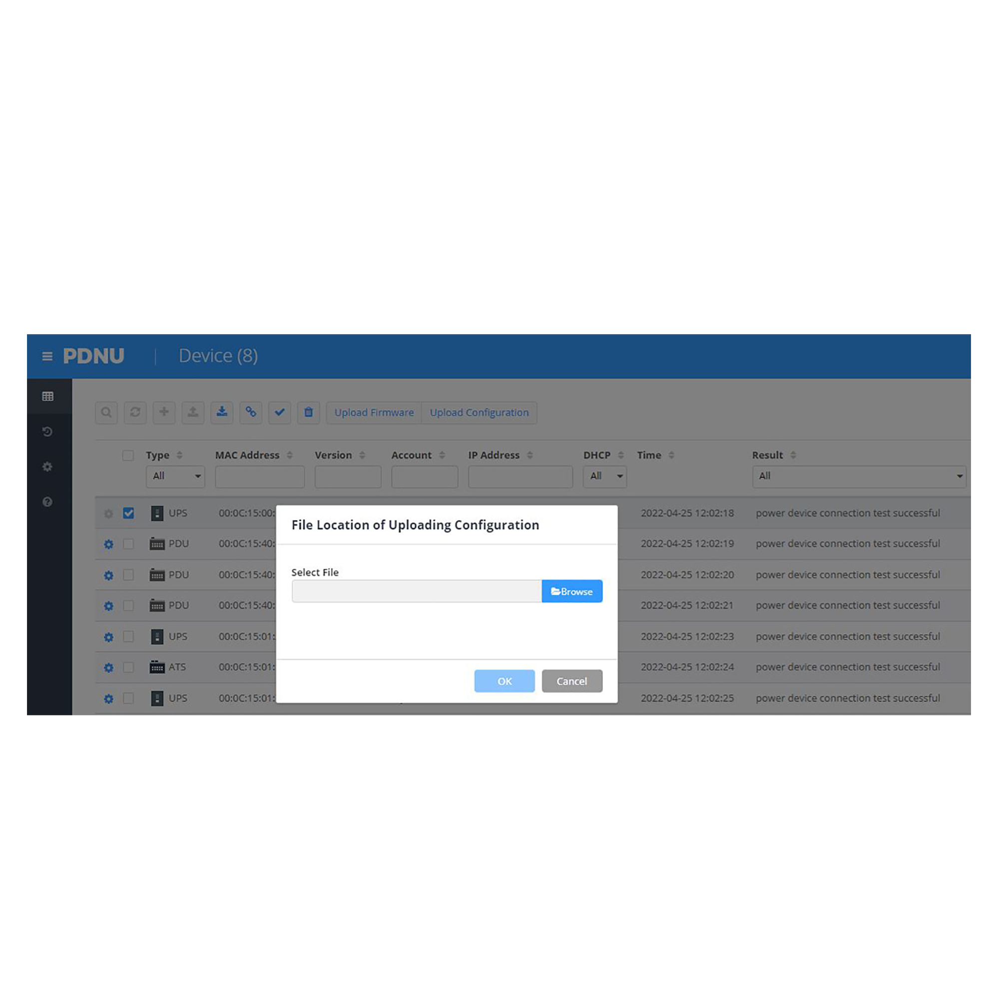 Upload Configuration function is used to upload the configuration file