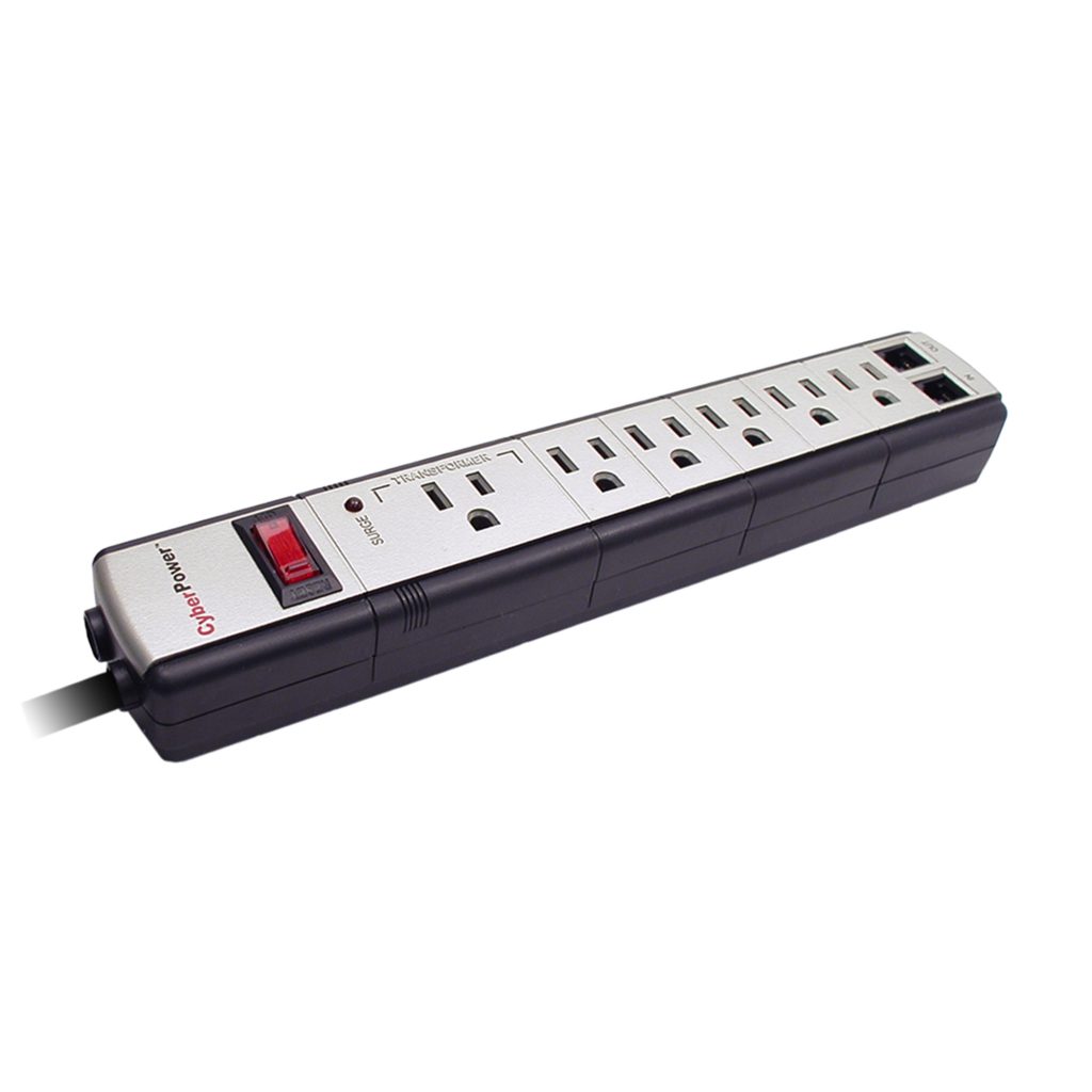 The CyberPower 6050 Silver surge suppressor is an all-purpose electronic surge protector with one built-in RJ-11 port, 900 Joules of protection and metal oxide varistor (MOV) technology.