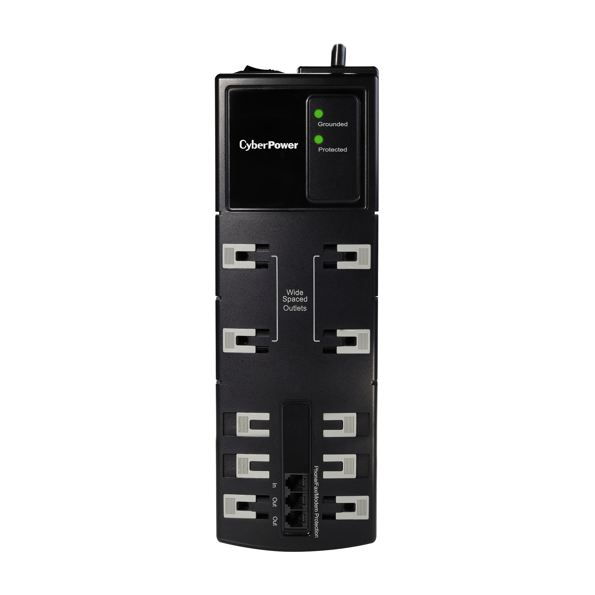The CyberPower B1006T is a Essential Surge Protector with 2850 joules of protection, 10 outlets (4 widely spaced to accomodate transformer-sized plugs), and RJ11 phone protection. This surge protector is ideal for protecting personal computers, phones/fax/modems, printers, stereos, and CD/DVD players.