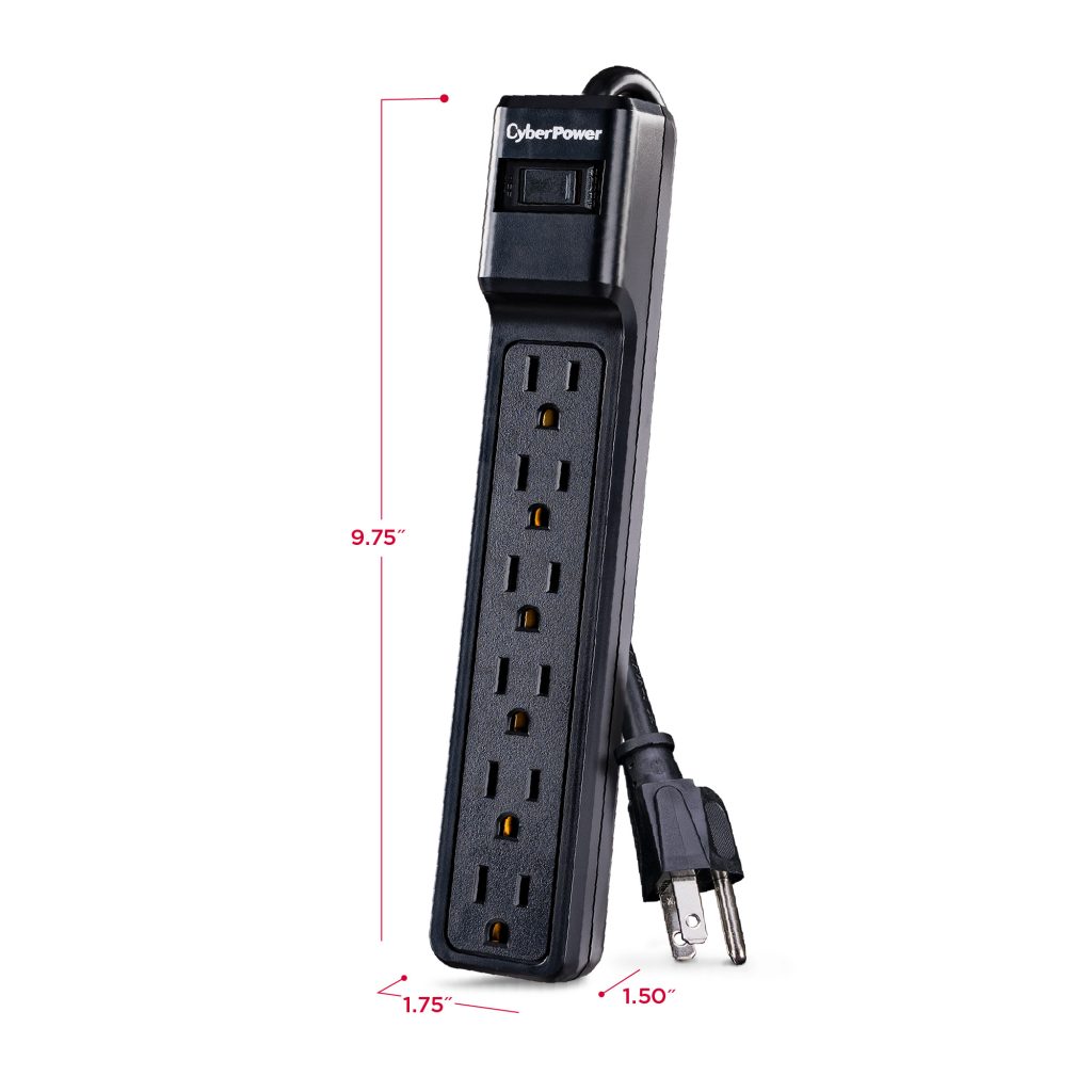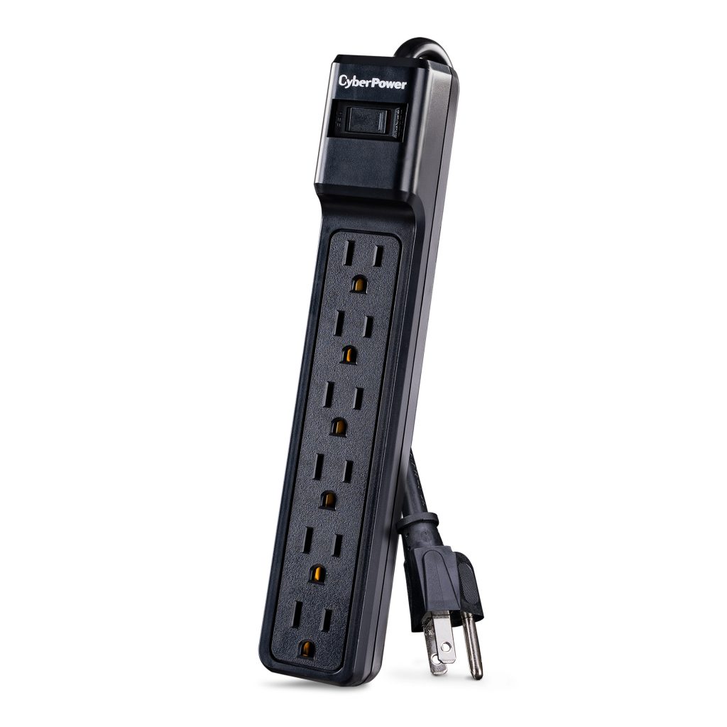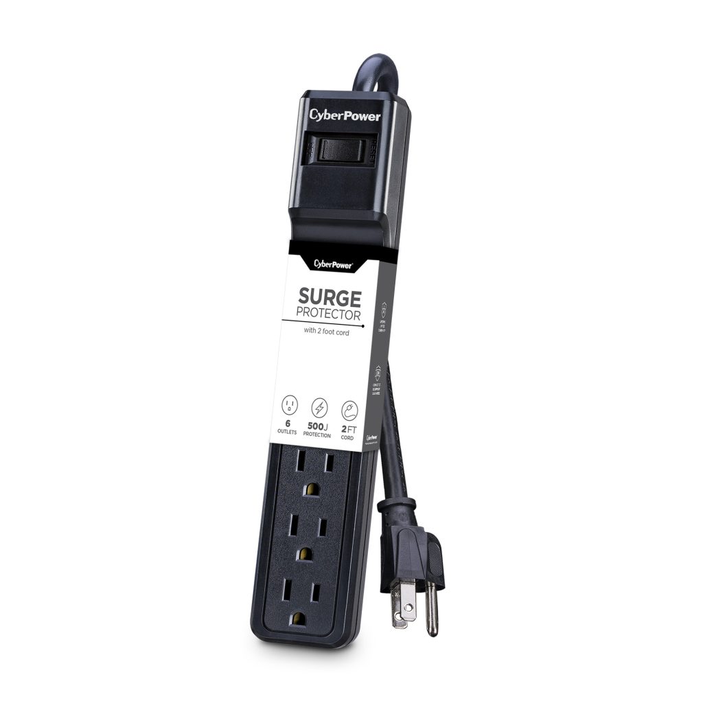 The CyberPower B602RC1BK surge protector offers protection for home and office devices such as computers and electronics. It prevents energy spikes caused by storms and electrical power surges from reaching and potentially harming your electronic equipment. The B602RC1BK provides 500 joules of protection with 6 outlets and a 2 foot power cord. Features of the B602RC1BK include automatic shutdown, metal oxide varistor (MOV) technology, mounting slots, and an impact-resistant casing. This surge protector comes with a Limited Lifetime Warranty and a $25,000 Connected Equipment Guarantee.