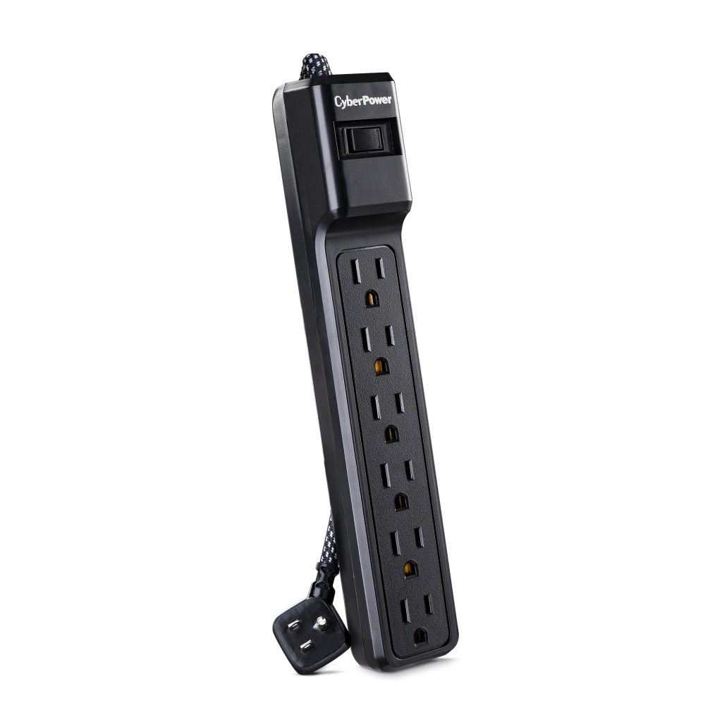 The B608B Surge Protector from CyberPower offers vital surge protection for common home and office devices such as computers and electronics. It prevents spikes in energy caused by storms and electrical power surges from reaching your electronic equipment. The B608B provides 500 joules of protection with 6 outlets and an 8 foot power cord.