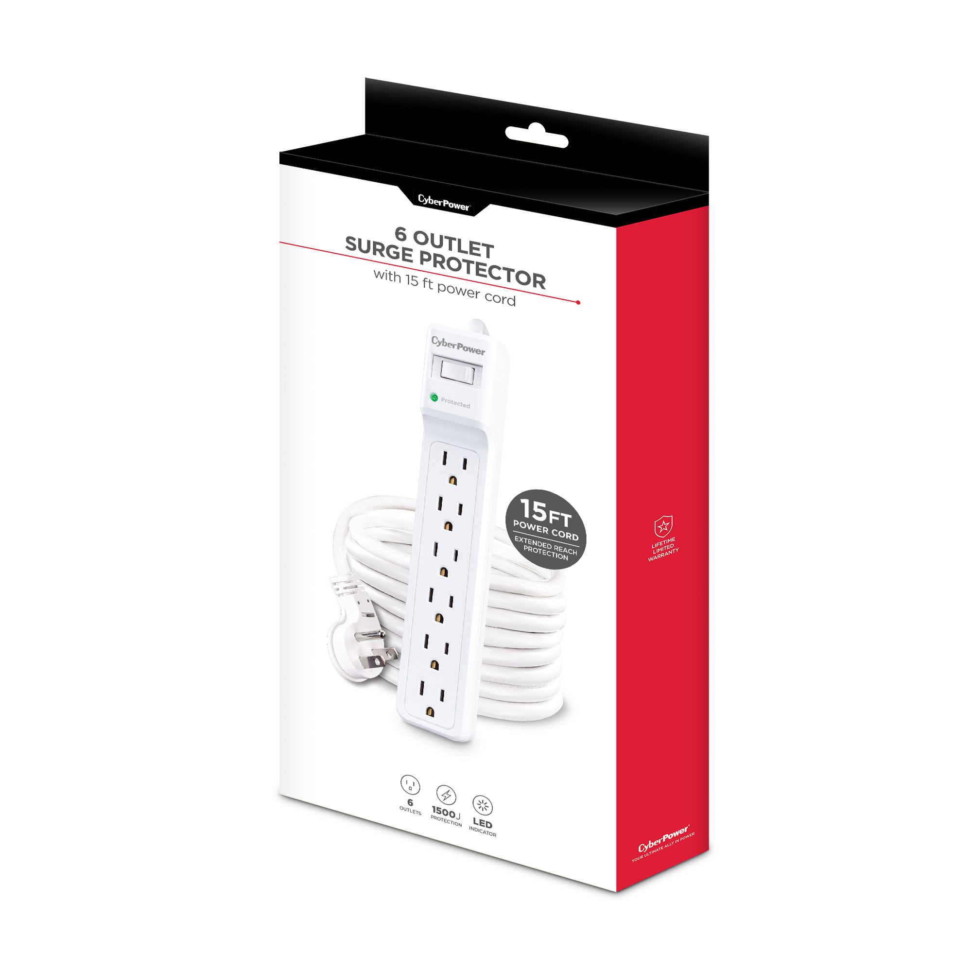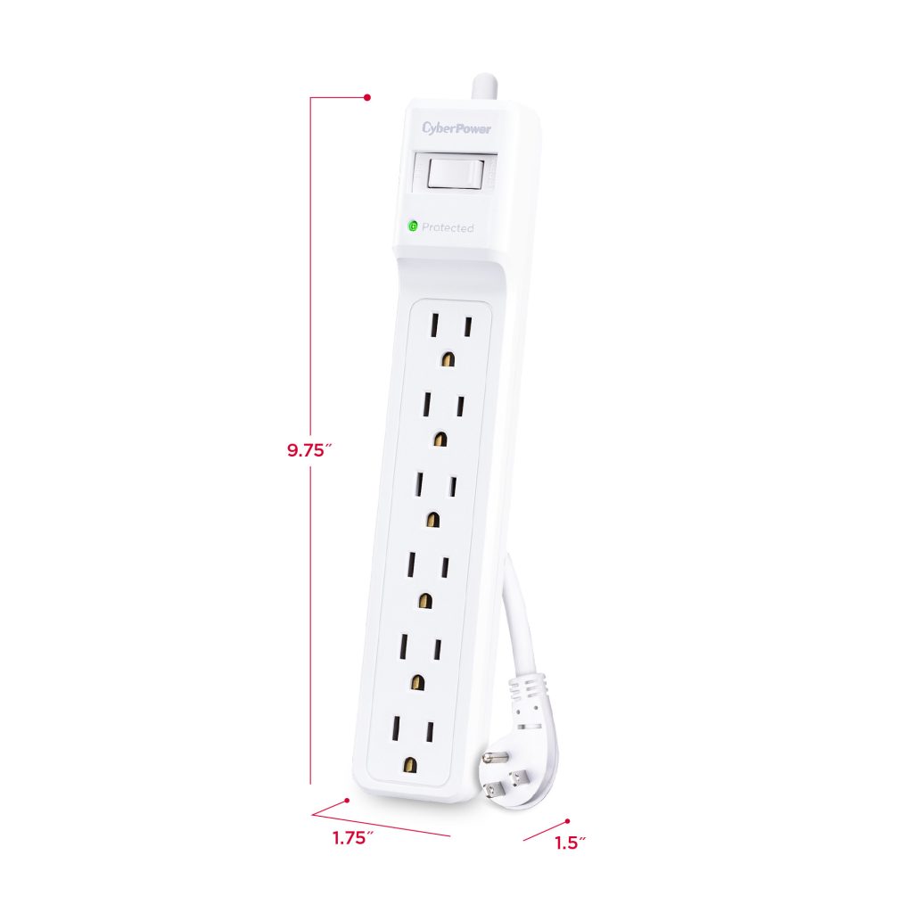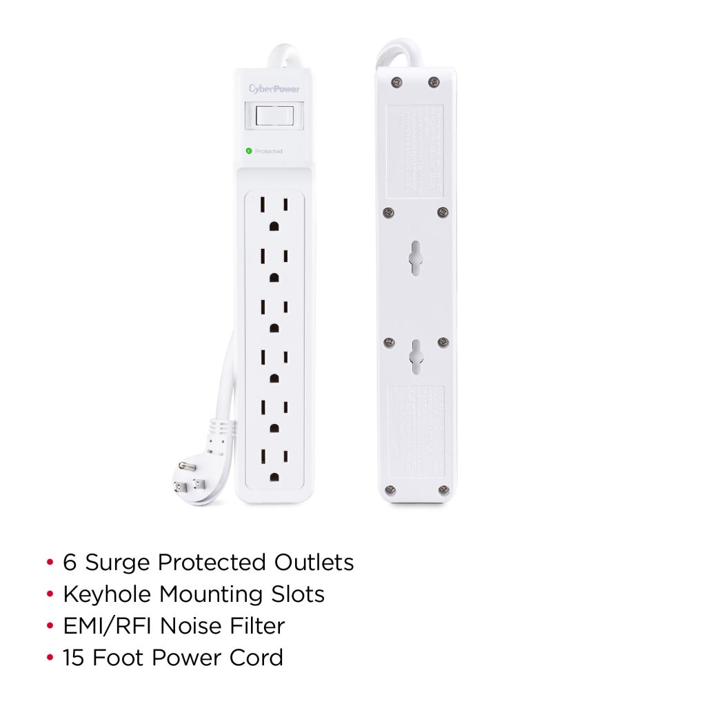 The Essential Surge Protector B615 from CyberPower offers vital surge protection for common home and office devices such as computers and electronics. It prevents spikes in energy caused by storms and electrical power surges from reaching your electronic equipment. The B615 provides 1500 joules of protection with 6 outlets and a long, 15 foot power cord.