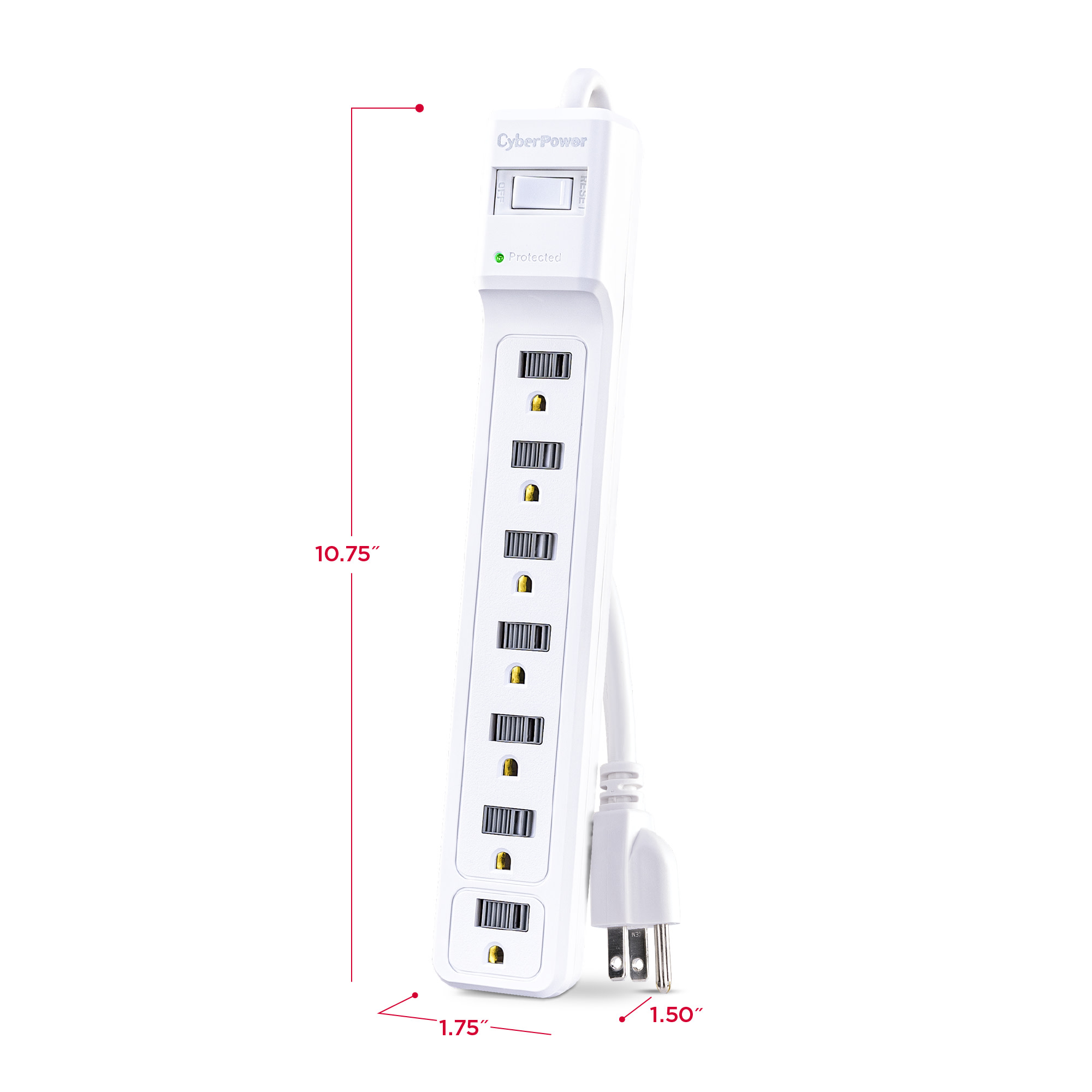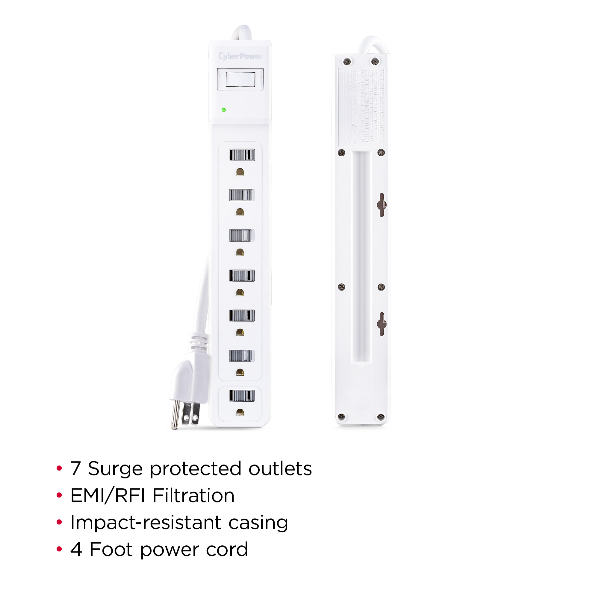 The Essential Surge Protector B704 from CyberPower offers vital surge protection for common home and office devices such as computers and electronics. It prevents spikes in energy caused by storms and electrical power surges from reaching your electronic equipment. The B704 provides 1200 joules of protection with 7 outlets and a power cord (4 ft.).