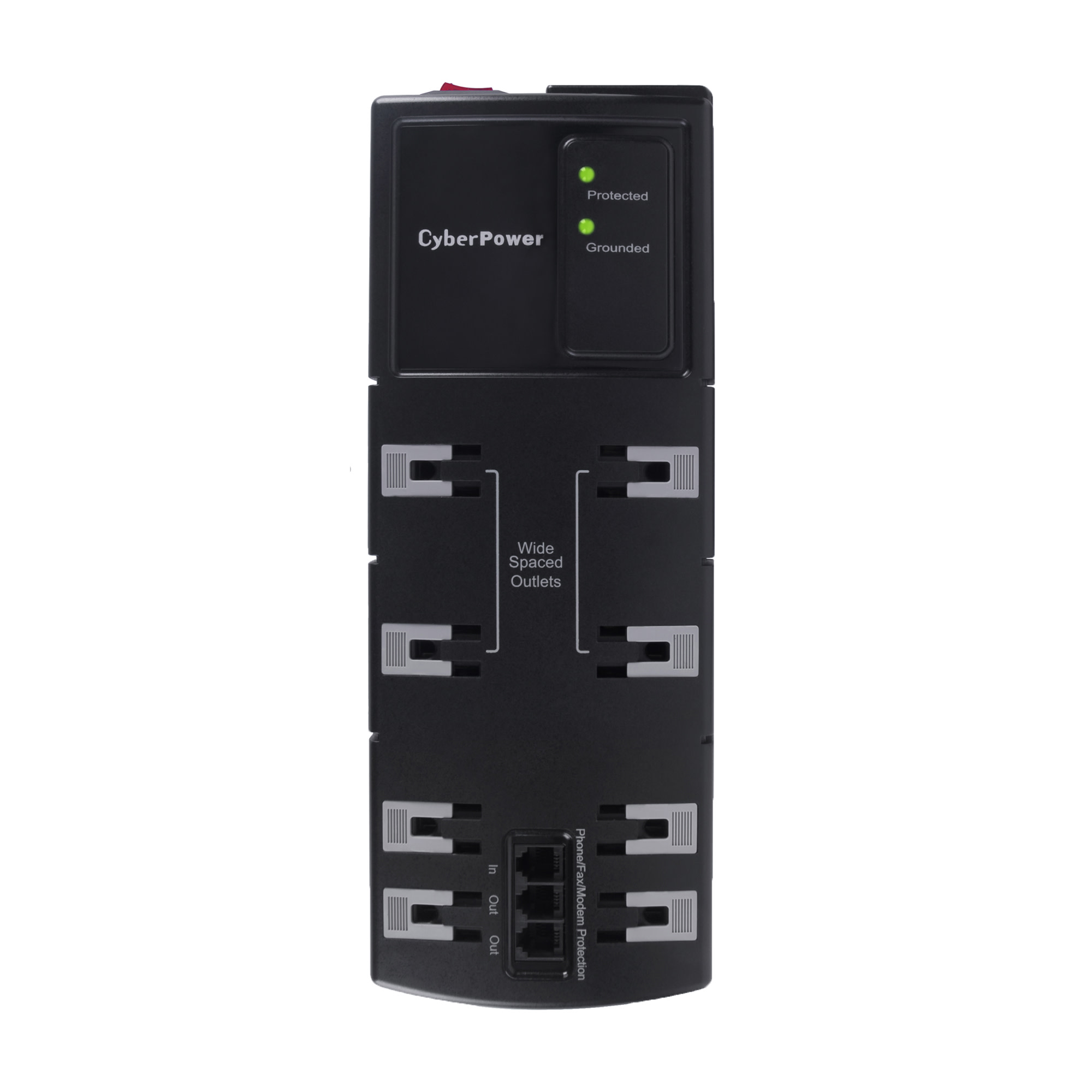 The Essential Surge Protector B804T prevents spikes in energy caused by storms and electrical power surges from reaching your home office equipment such as computers, laptops, printers, chargers, and small electronics. The B804T provides 2550 joules of protection, 8 outlets (4 standard and 4 widely spaced), and a power cord (4 ft.). Data line protection occurs for phone/fax/modem (RJ11).