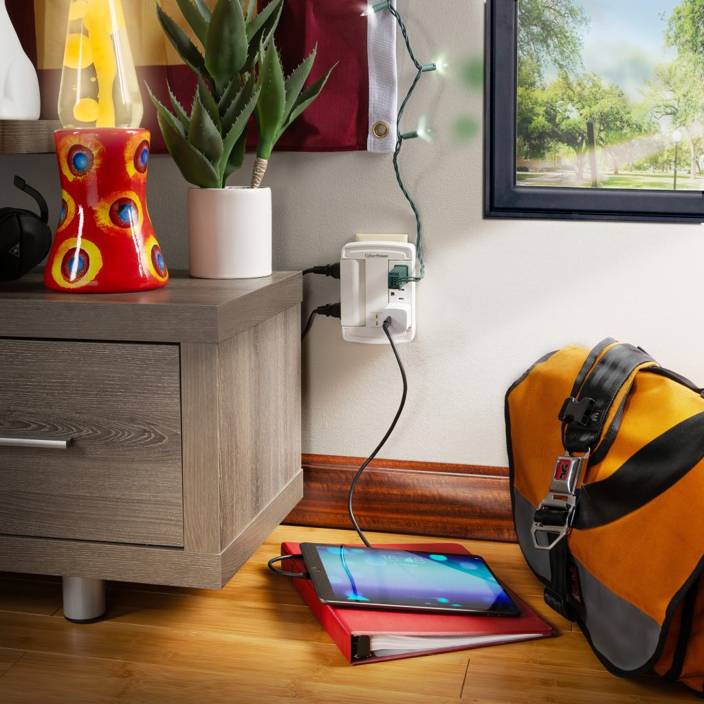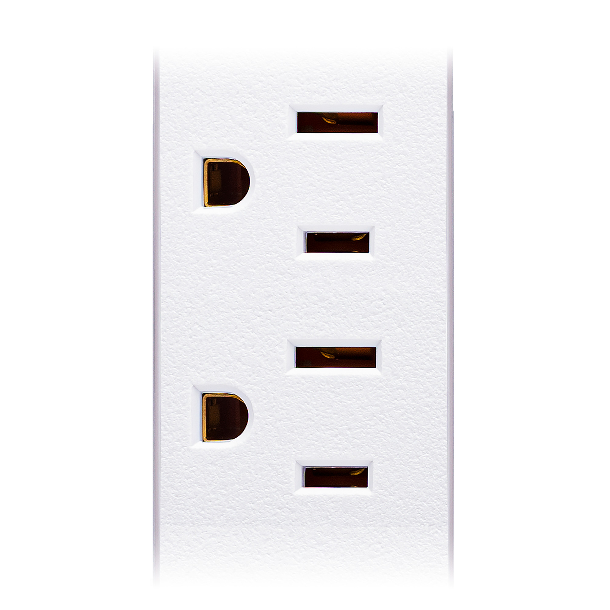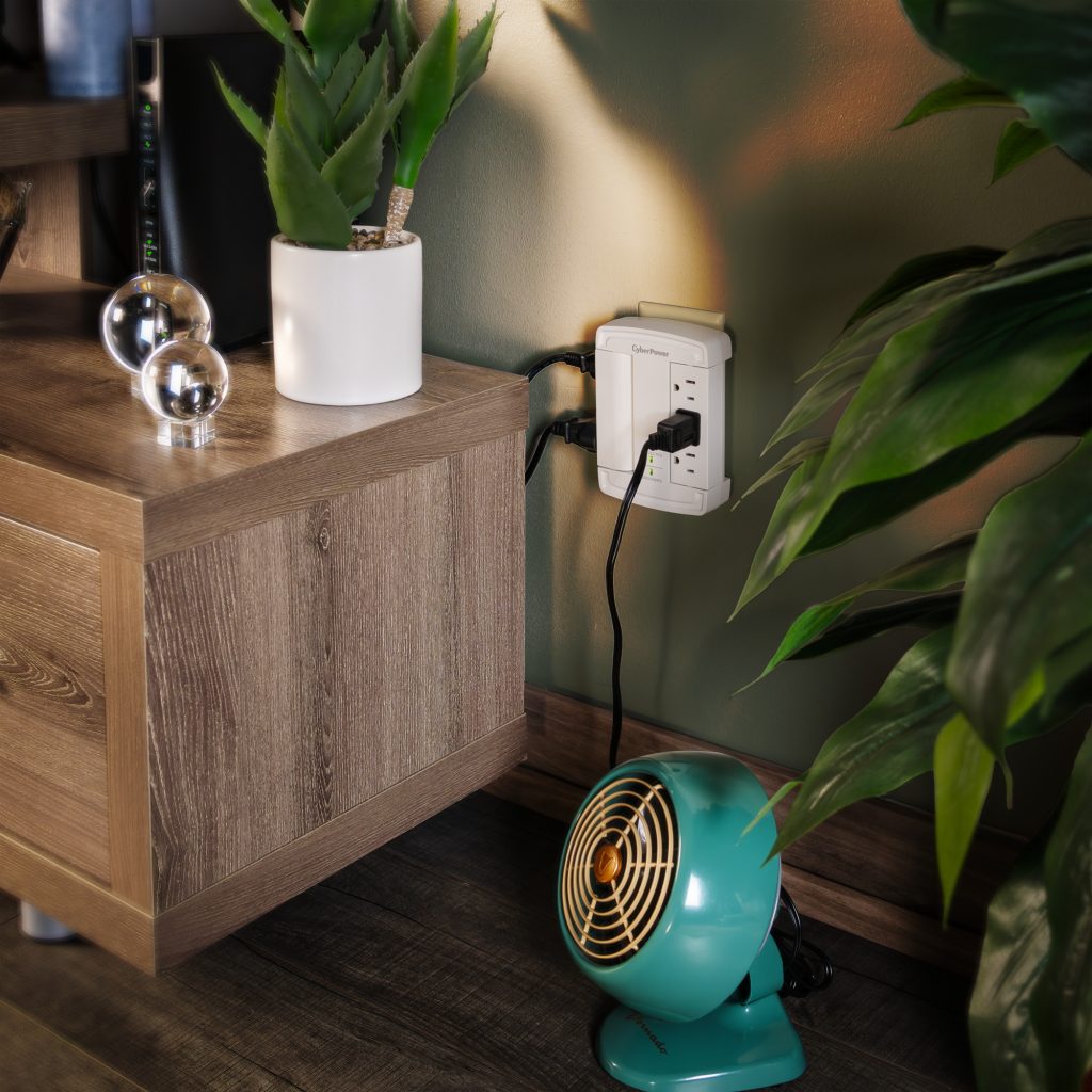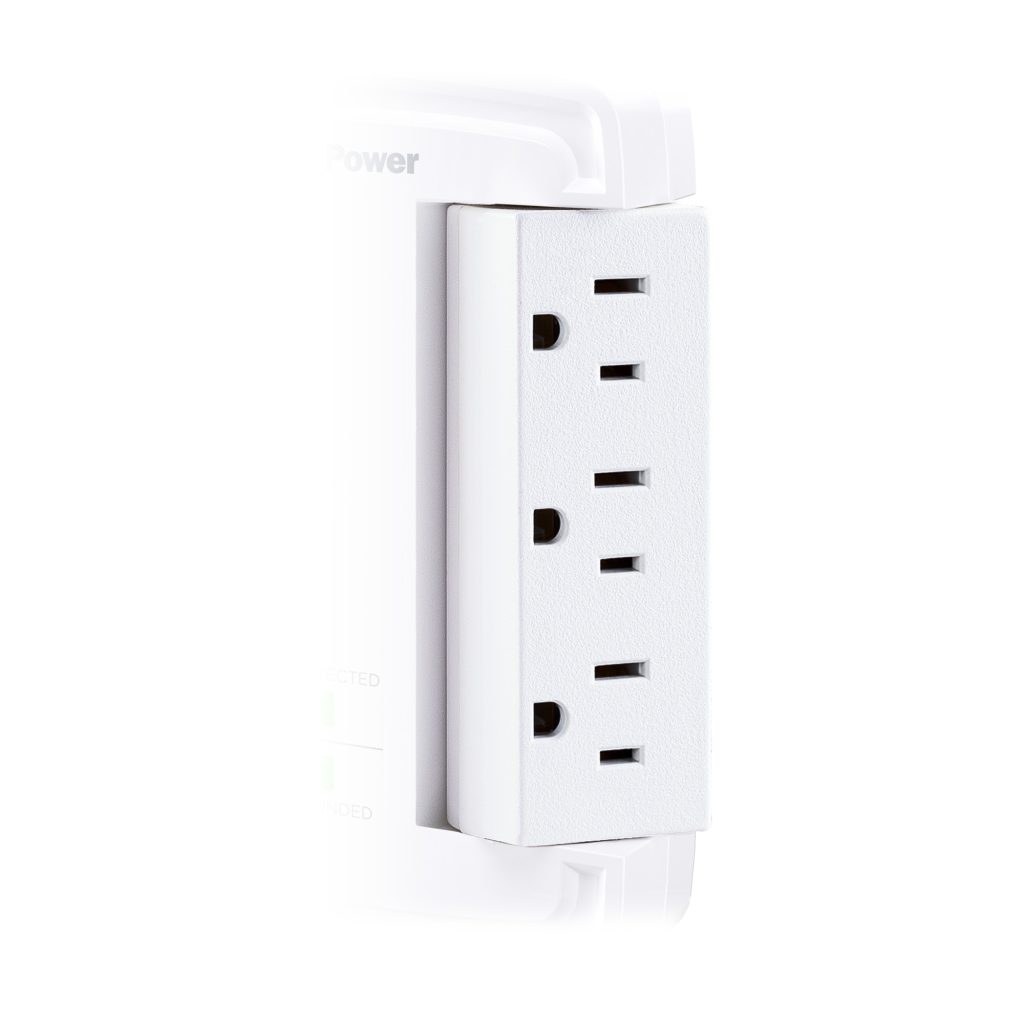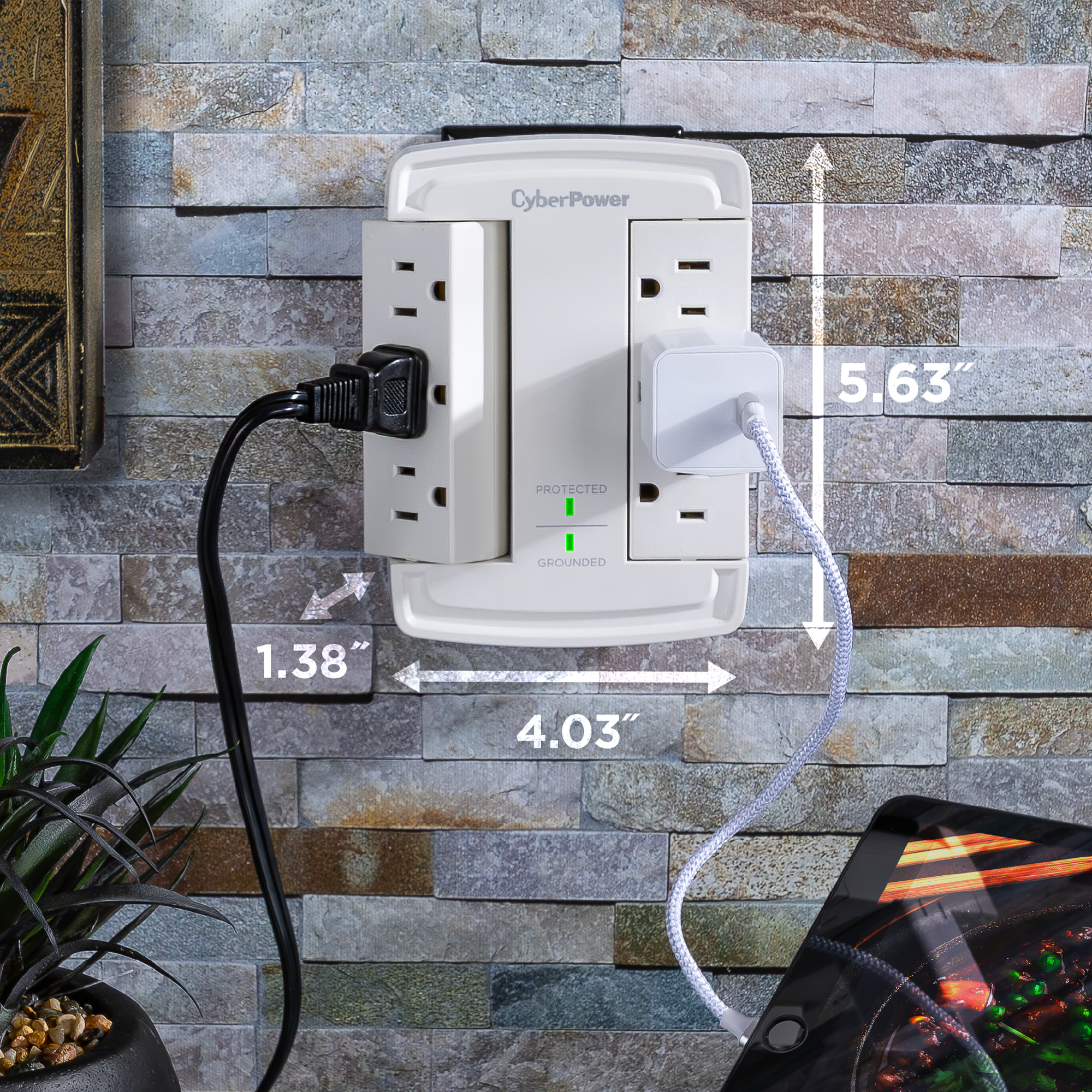The CyberPower CSB6WS Surge Protector transforms a standard 2-outlet wall socket into six surge-protected outlets, giving you the space and safety your devices need. Perfect for crowded areas where chargers, computers, and electronics compete for limited plugs. Featuring dual swiveling outlet banks, this surge protector offers flexible positioning and improved cord management—keeping your setup neat and organized. With 1800 joules of surge protection, it defends your valuable tech from power spikes and electrical surges. Ideal for safeguarding computers, routers, modems, chargers, and other personal tech essentials.