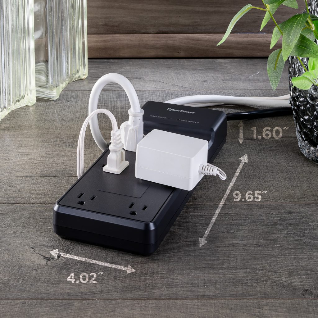 Redirects excess voltage away from sensitive electronic equipment during AC power surges or spikes, protecting against potential damage. - Wide Spaced Outlets