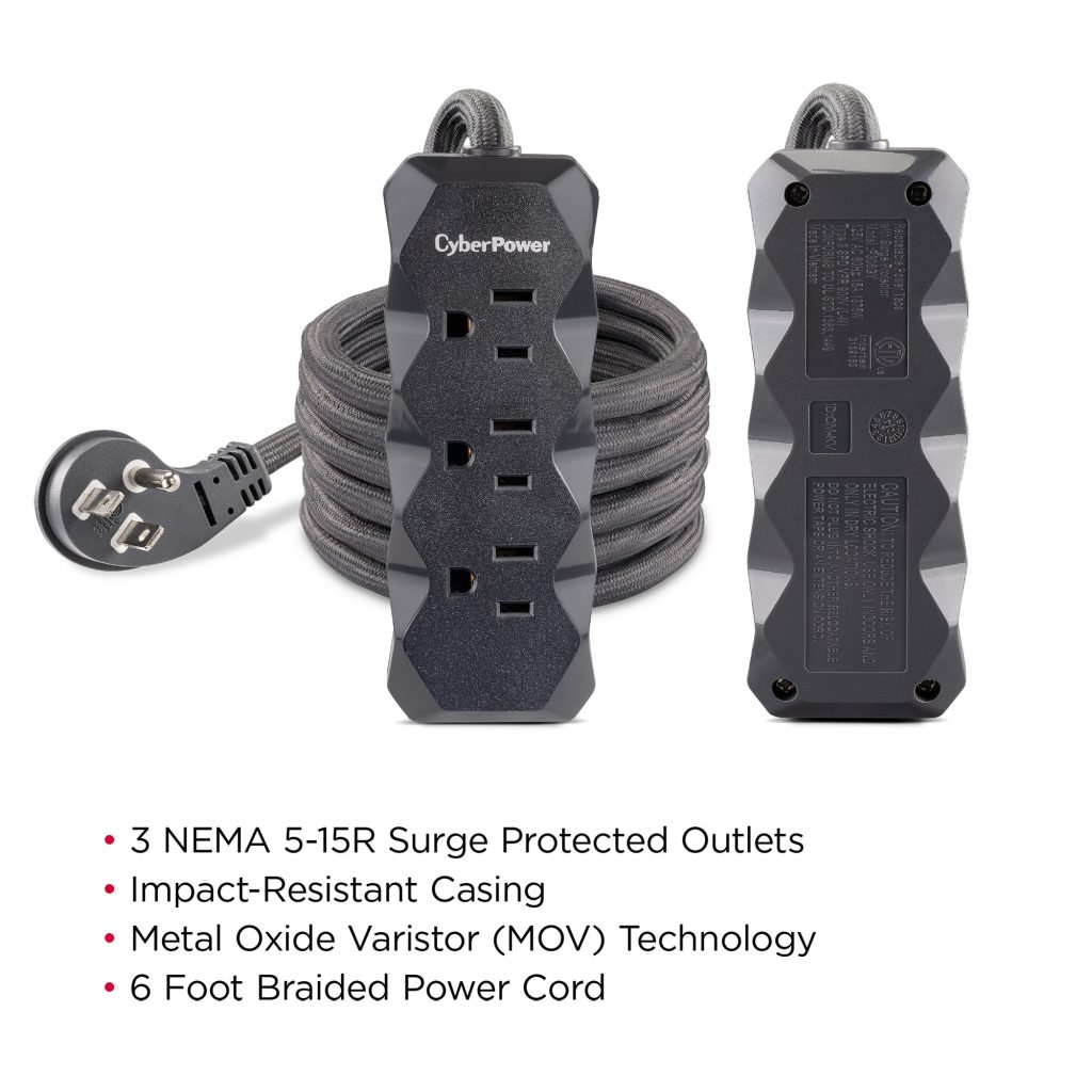 This Cyberpower Surge Protector provides protection to prevent damaging power spikes and surges from reaching your small electronics.