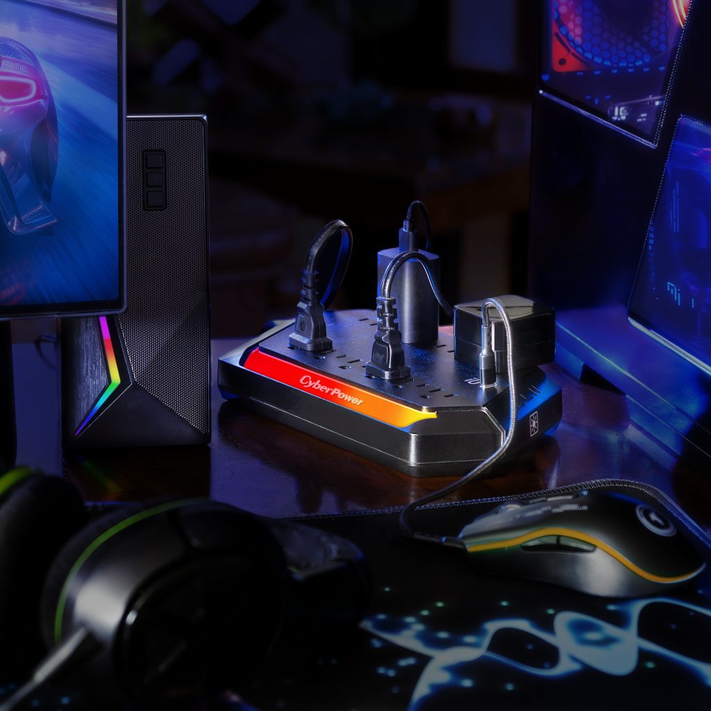 Level up your defense with the CyberPower GXS1005C2 Surge Protector – built for gamers who don’t mess around. Packing a whopping 3000 joules of protection, it shields your battle station from power spikes, surges, and the chaos of the grid. Whether you’re running raids on your console or racking up kills on your PC, your gear stays locked and loaded. With 10 total outlets (including 4 wide-spaced for chunky plugs), a 5-foot cord, and dual USB-C ports for fast charging, you can power your rig, dual monitors, charging docks, VR base stations, and still have room to spare—no more playing outlet Tetris. And the customizable RGB light bar? It syncs with your setup so your surge protector doesn’t just protect—it flexes. Backed by a 1-year warranty and a $300,000 Connected Equipment Guarantee, the GXS1005C2 is your shield against power chaos. Defend your gear. Light up your loadout. Stay in the game.