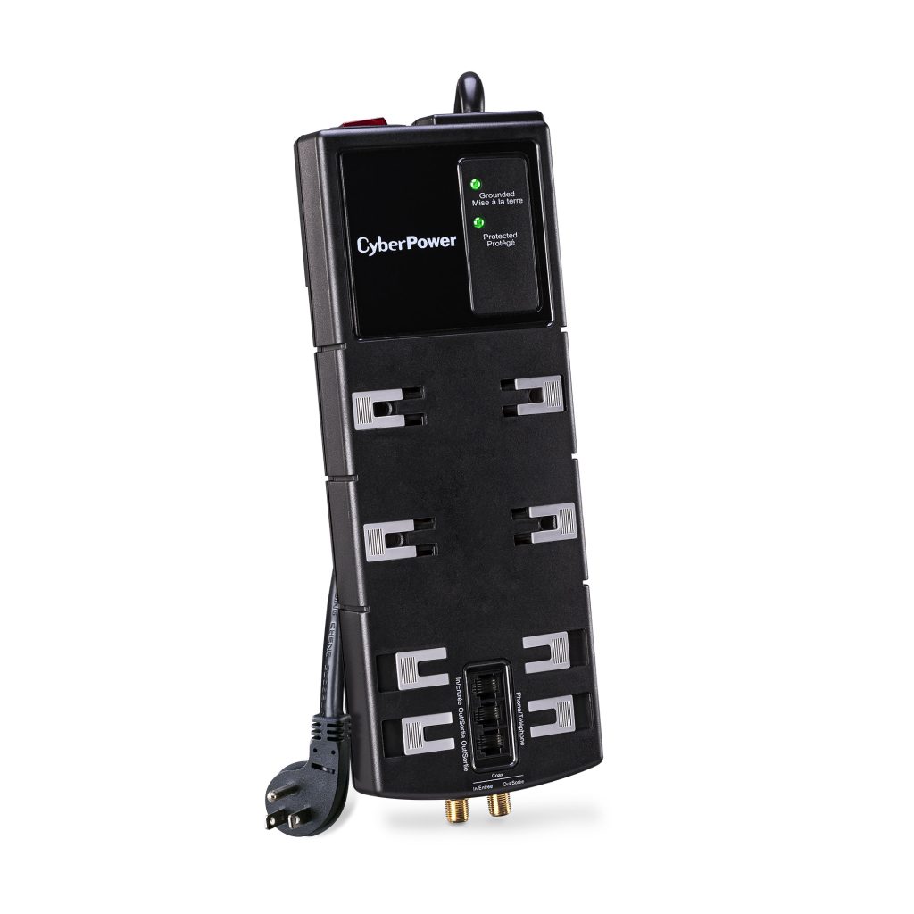 The Home Theater Surge Protector HT806TCRC1 provides 4350 joules of protection and 8 outlets to safeguard your home theater equipment from damage caused by electrical surges. Data line protection occurs with RJ11 ports for telecommunication devices such as phones, faxes, modems, and DSL lines. Gold-plated RG6 coaxial connectors protect cable/satellite TV receivers & modems.