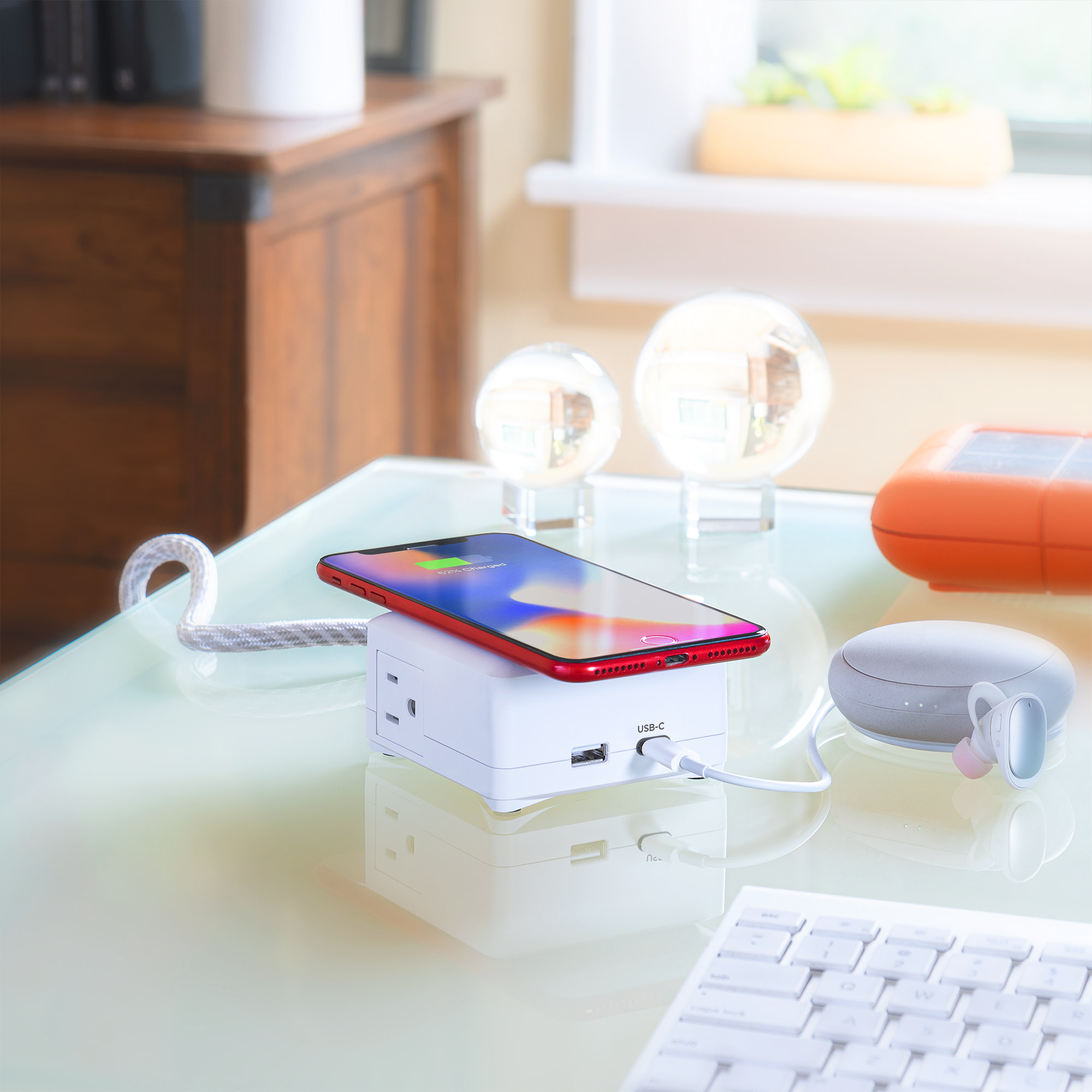 The CyberPower P205UCPDQ brings you power, protection, and versatility – all in one compact unit. Featuring 2 AC power outlets with 1500J of surge protection, 1 USB-A charging port, 1 USB-C charging port, and a 10W wireless Qi charging pad that works with iPhone and Android phones. It’s perfect for desk tops, table tops or other high-traffic areas of the home or office.