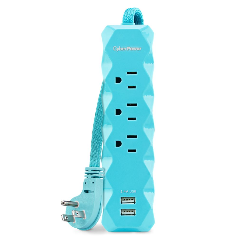 This Cyberpower Surge Protector provides protection to prevent damaging power spikes and surges from reaching your small electronics. The P303UMT surge protector includes 2 USB ports to quickly charge USB-powered devices, including tablets.