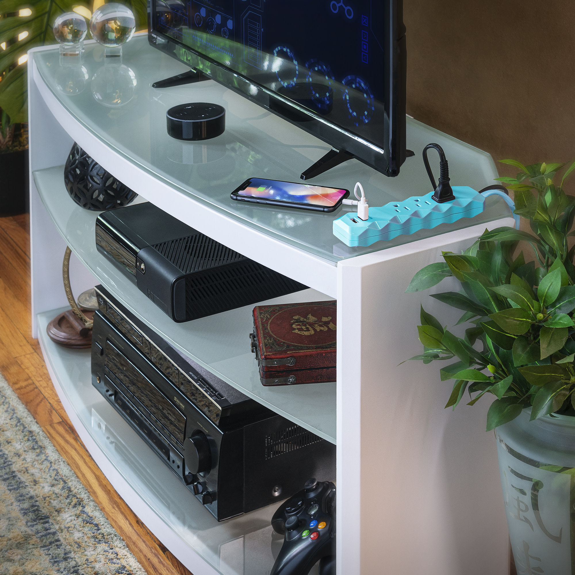electronics and the surge suppressor.