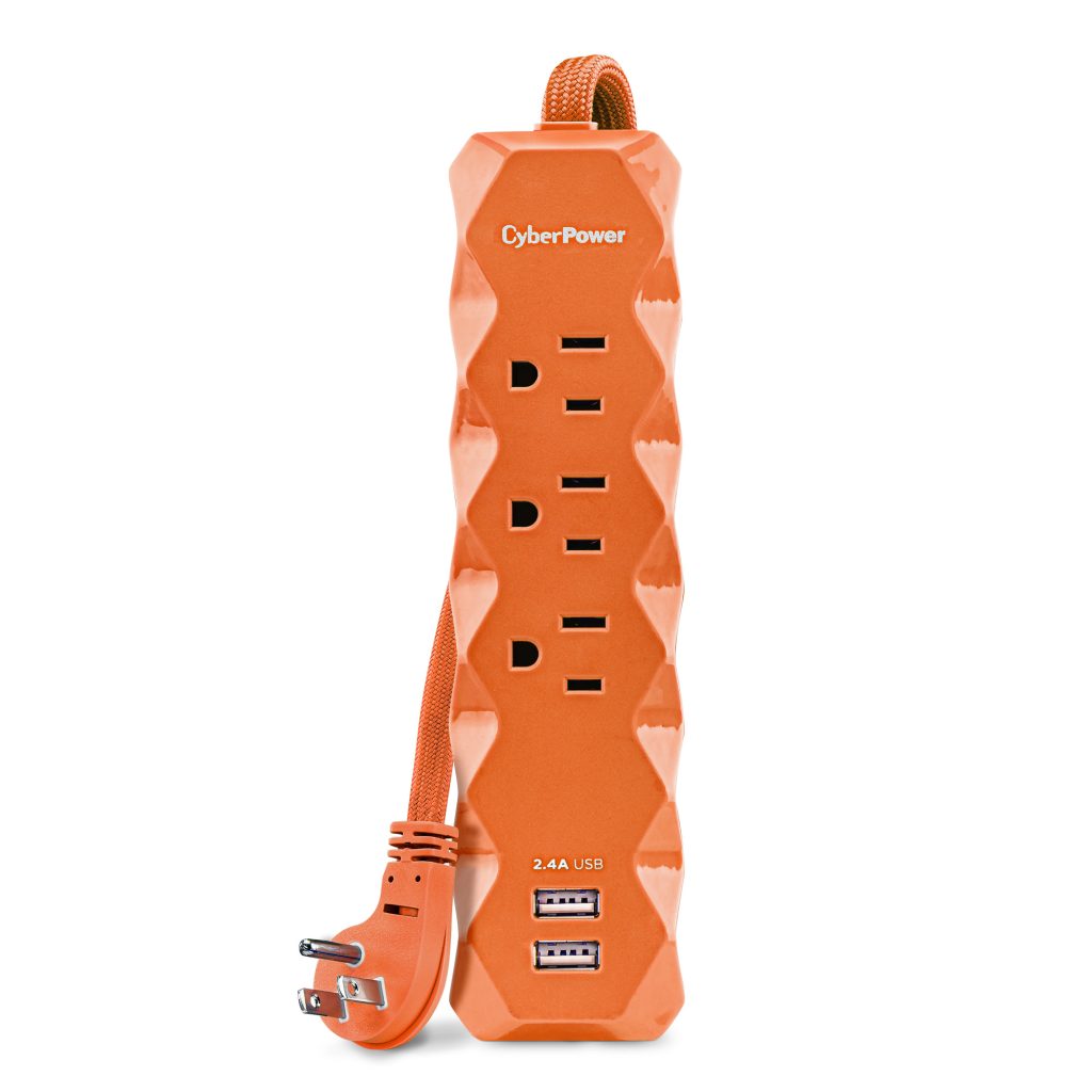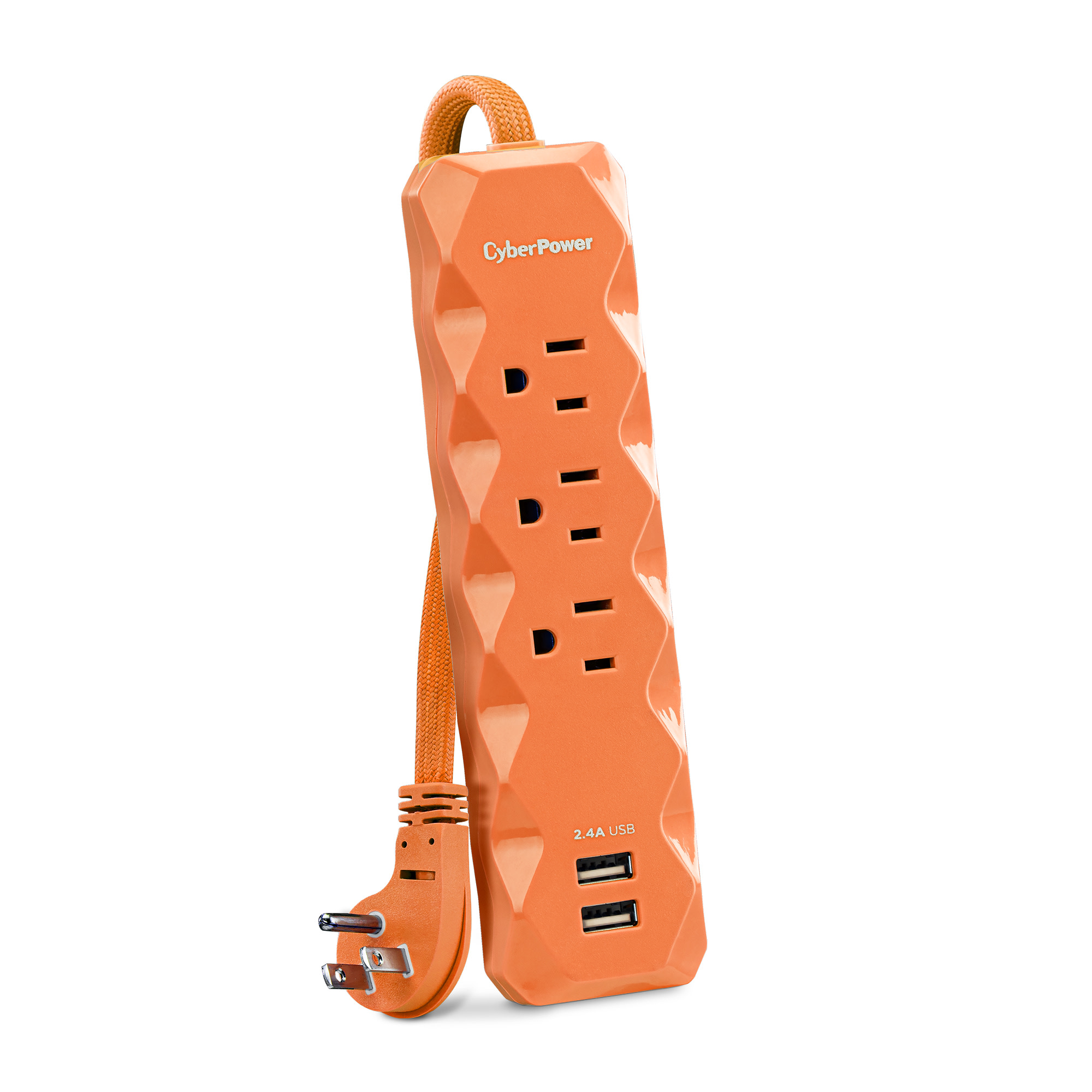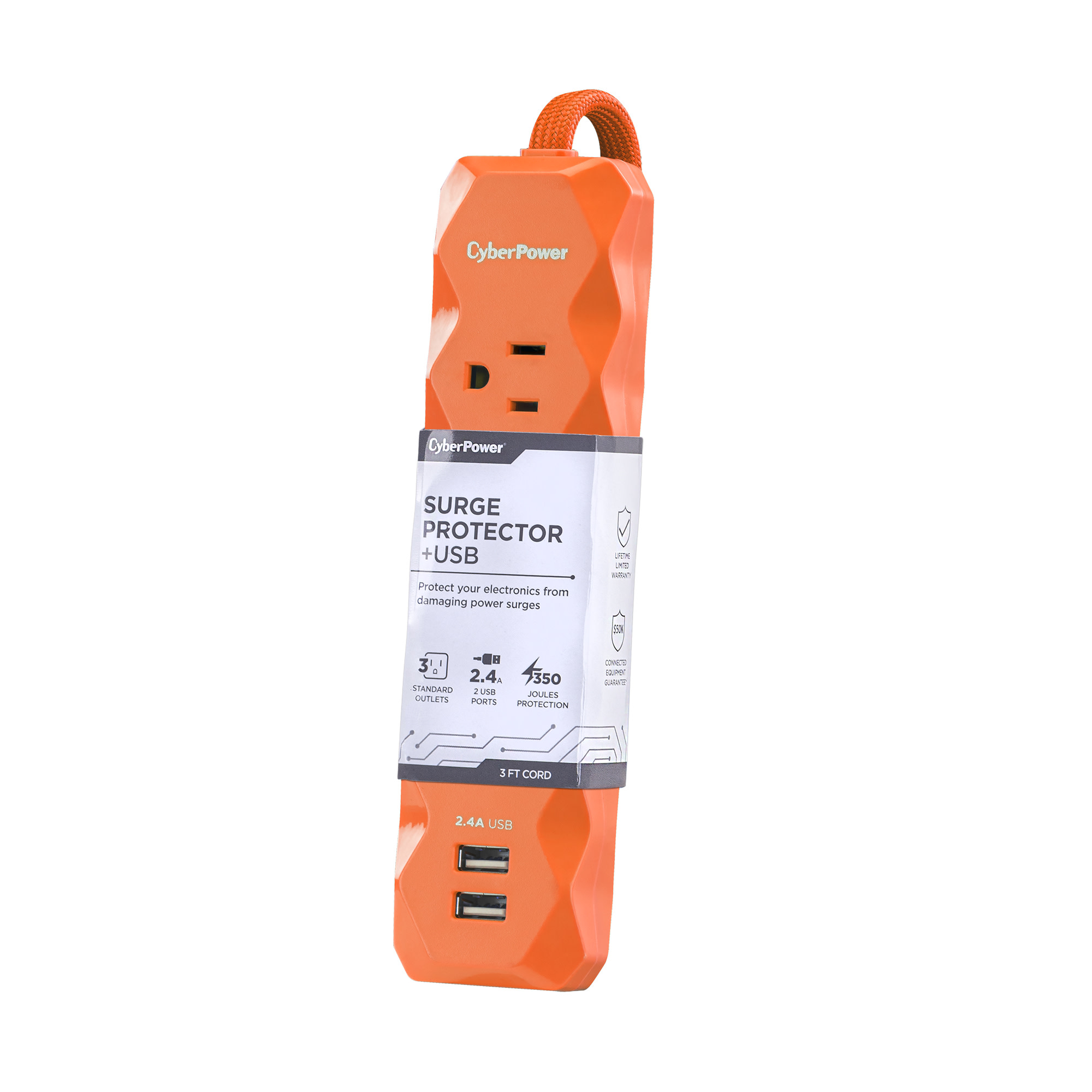 This Cyberpower Surge Protector provides protection to prevent damaging power spikes and surges from reaching your small electronics. The P303UOR surge protector includes 2 USB ports to quickly charge USB-powered devices, including tablets.