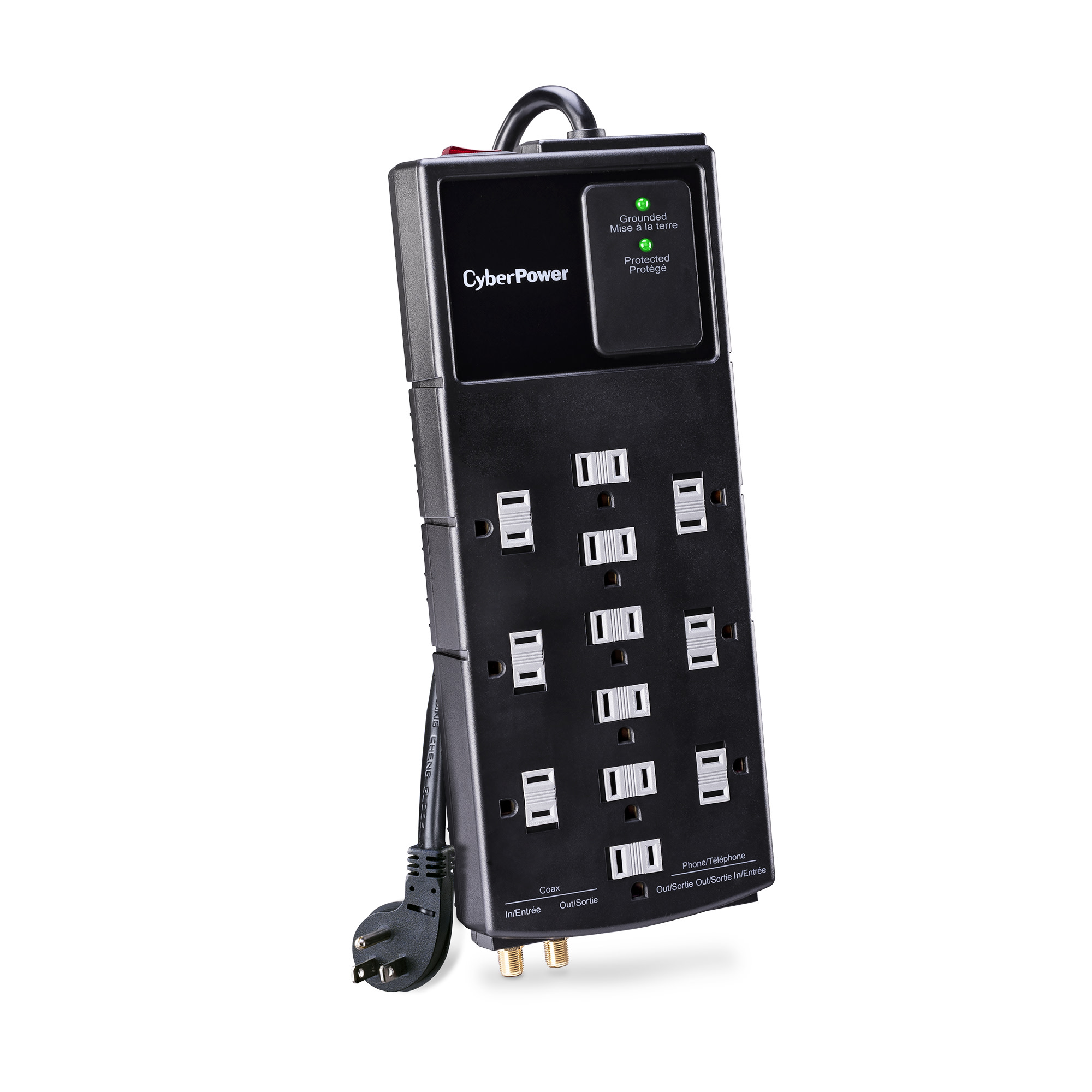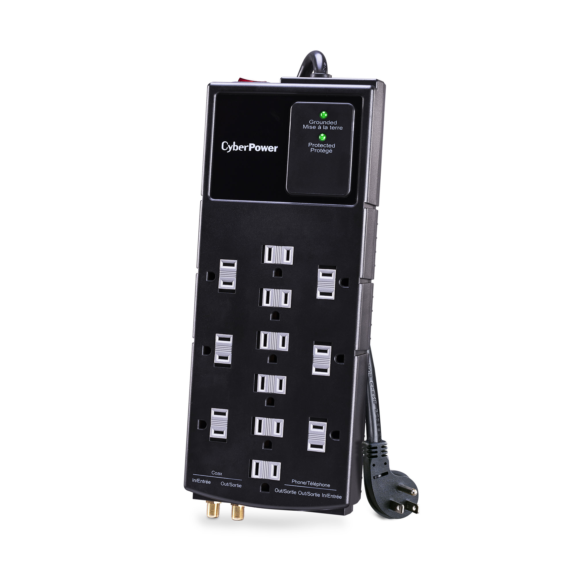 The Home Theater Surge Protector HT1210TC provides 4350 joules of surge protection and 12 outlets to safeguard your home theater equipment from damage caused by electrical surges. Data line protection occurs with RJ11 ports for telecommunication devices such as phones. Gold-plated RG6 coaxial connectors protect cable/satellite TV receivers and broadband modems.