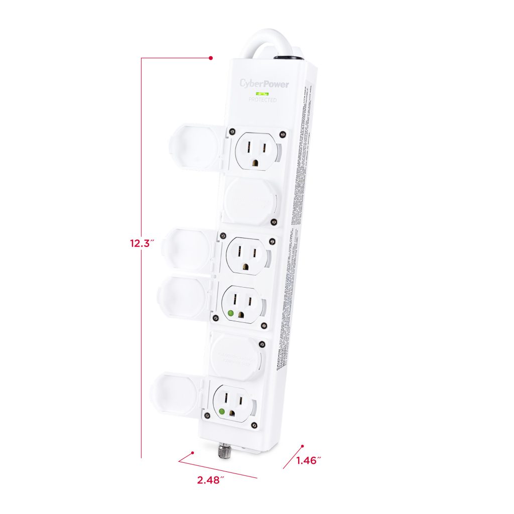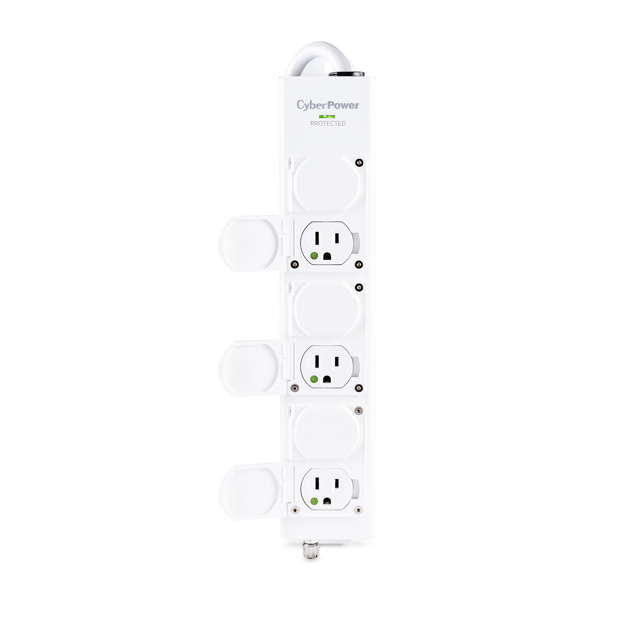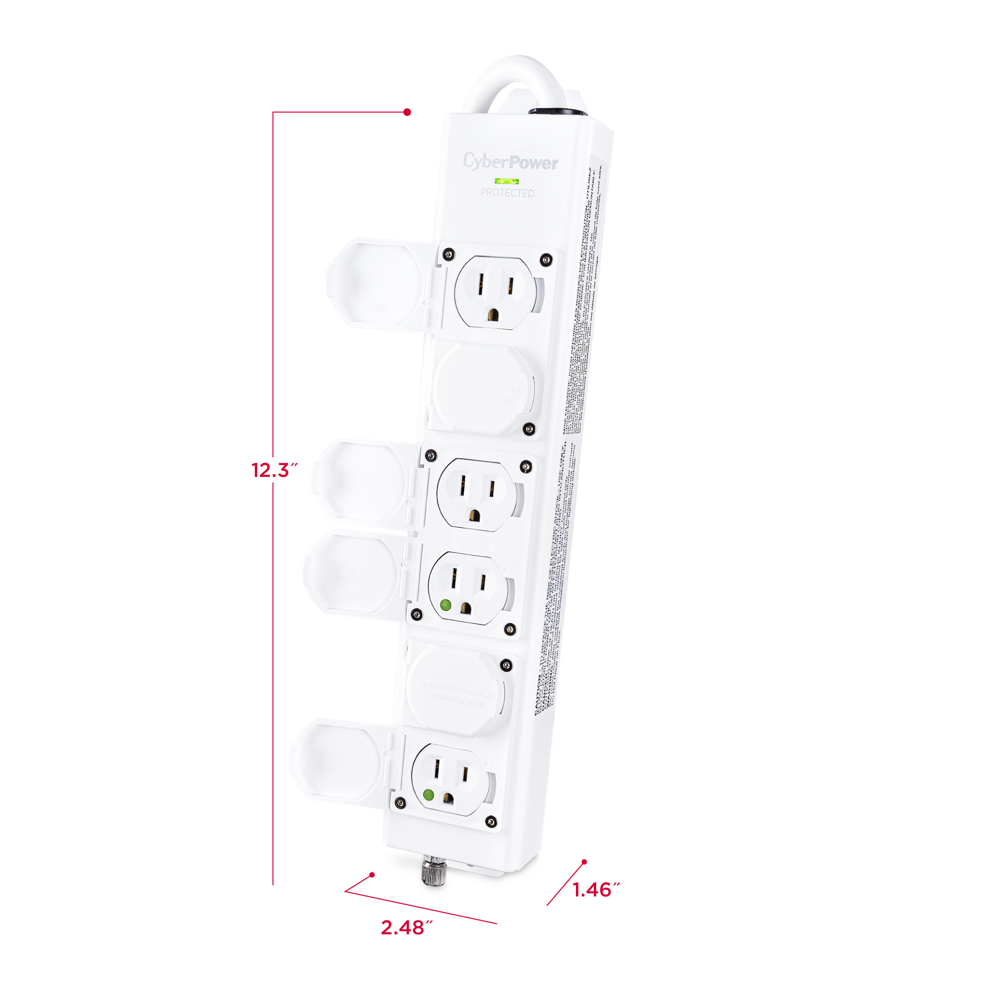 The CyberPower MPV615S Medical Grade Surge Protector delivers vital surge protection for use in hospitals, clinics, group practices, private practices, laboratory or other medical facilities, allowed for use within six feet of a patient for non-critical care applications. The surge protection prevents spikes in energy caused by storms and electrical power surges from reaching sensitive medical equipment in hospitals and healthcare facilities. Designed for use in patient care vicinities, the MPV615S is UL2930 listed. The MPV615S provides 1560 joules of protection, has 6 medical grade outlets with safety covers, a 15 foot 12AWG power cord, and a heavy duty medical grade plug.