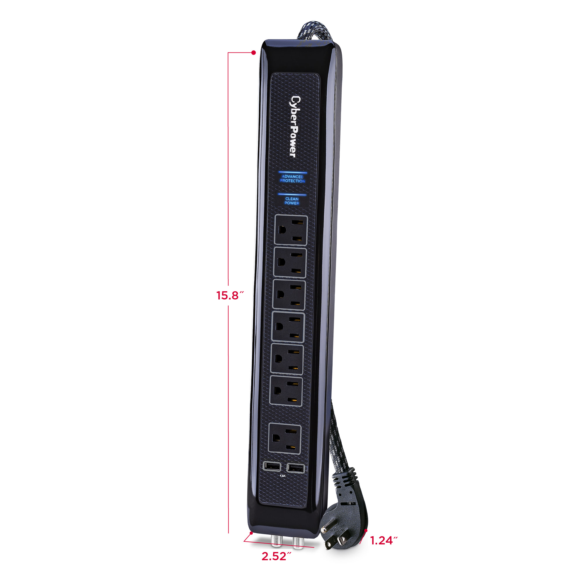 - 2,280-joules of premium surge protection; the more joules, the more protection.