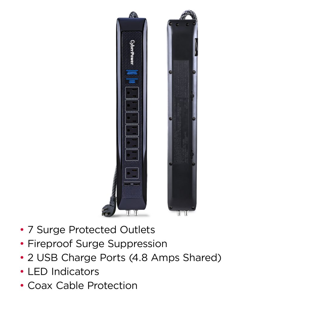 - 2,280-joules of premium surge protection; the more joules, the more protection.