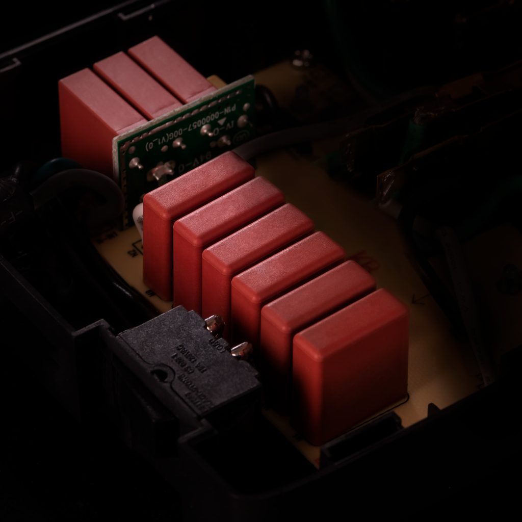- 7 total AC outlets power a home theater system with one wide-spaced outlet to accommodate an over-sized plug.