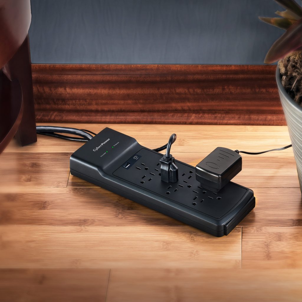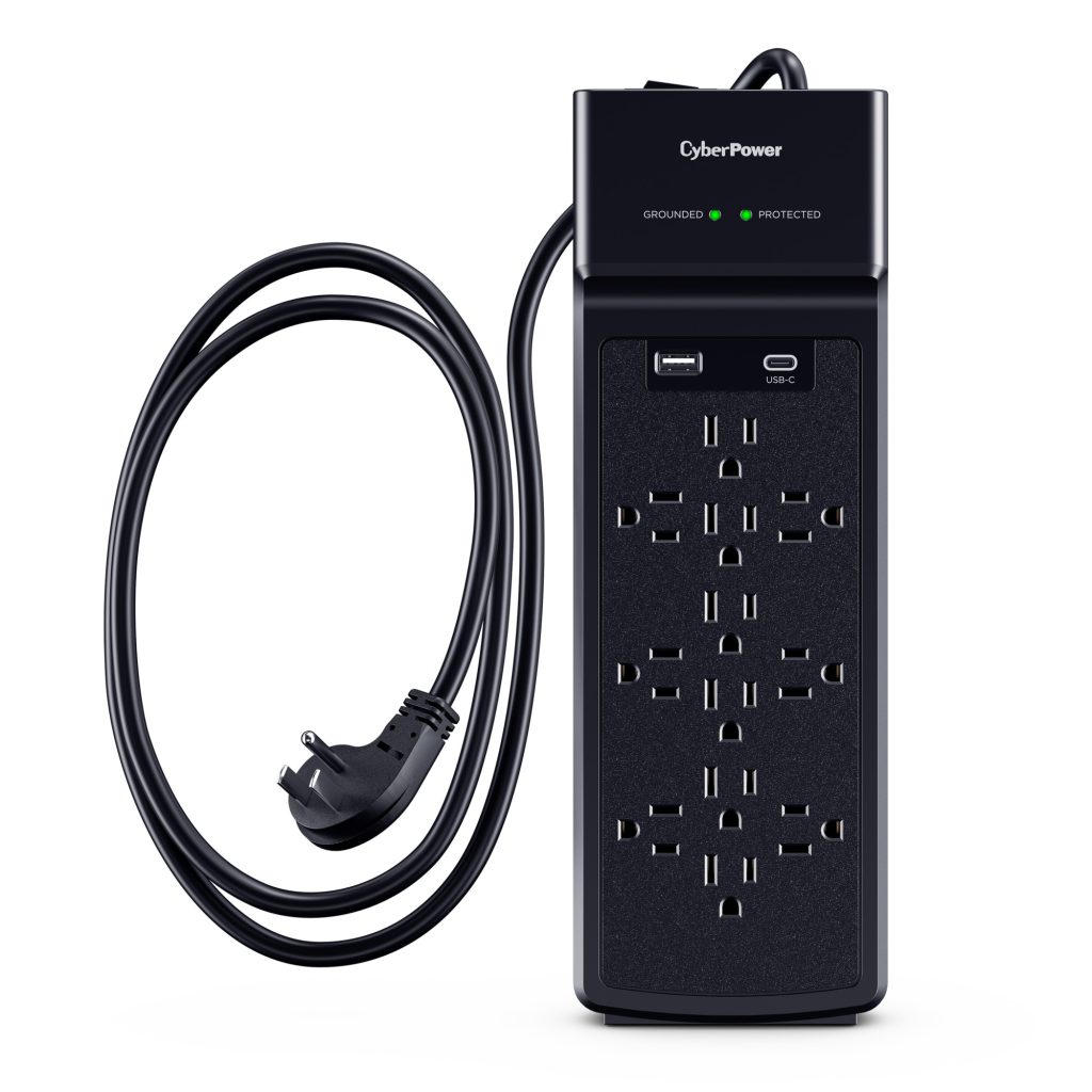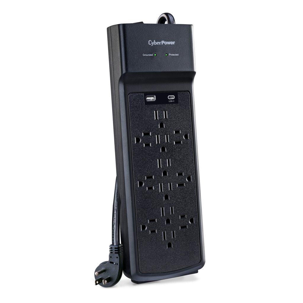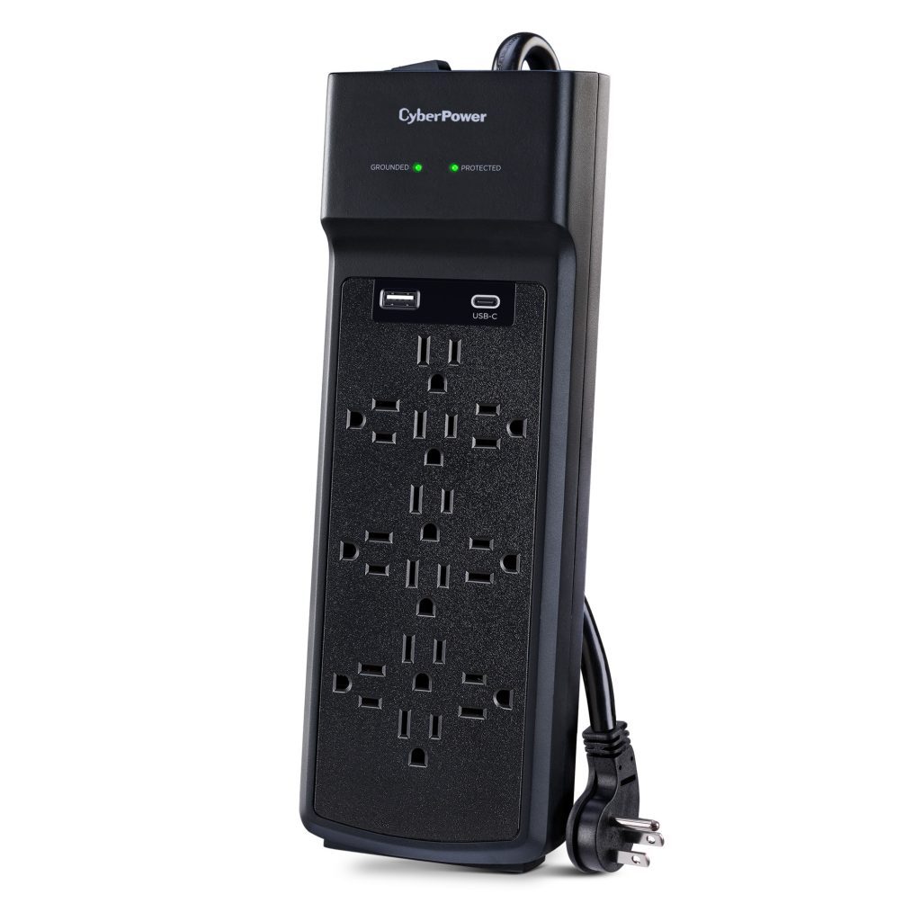 The CyberPower CSP1206UC Surge Protector provides essential surge protection for home and office electronics, including computers and other sensitive devices. Engineered to defend against power surges and energy spikes resulting from storms and electrical fluctuations, it offers 3000 joules of protection across twelve outlets. A durable 6-foot power cord ensures flexible placement, while the inclusion of one USB-A port and one USB-C port enables convenient charging of smartphones, tablets, and other mobile devices without occupying the primary outlets.