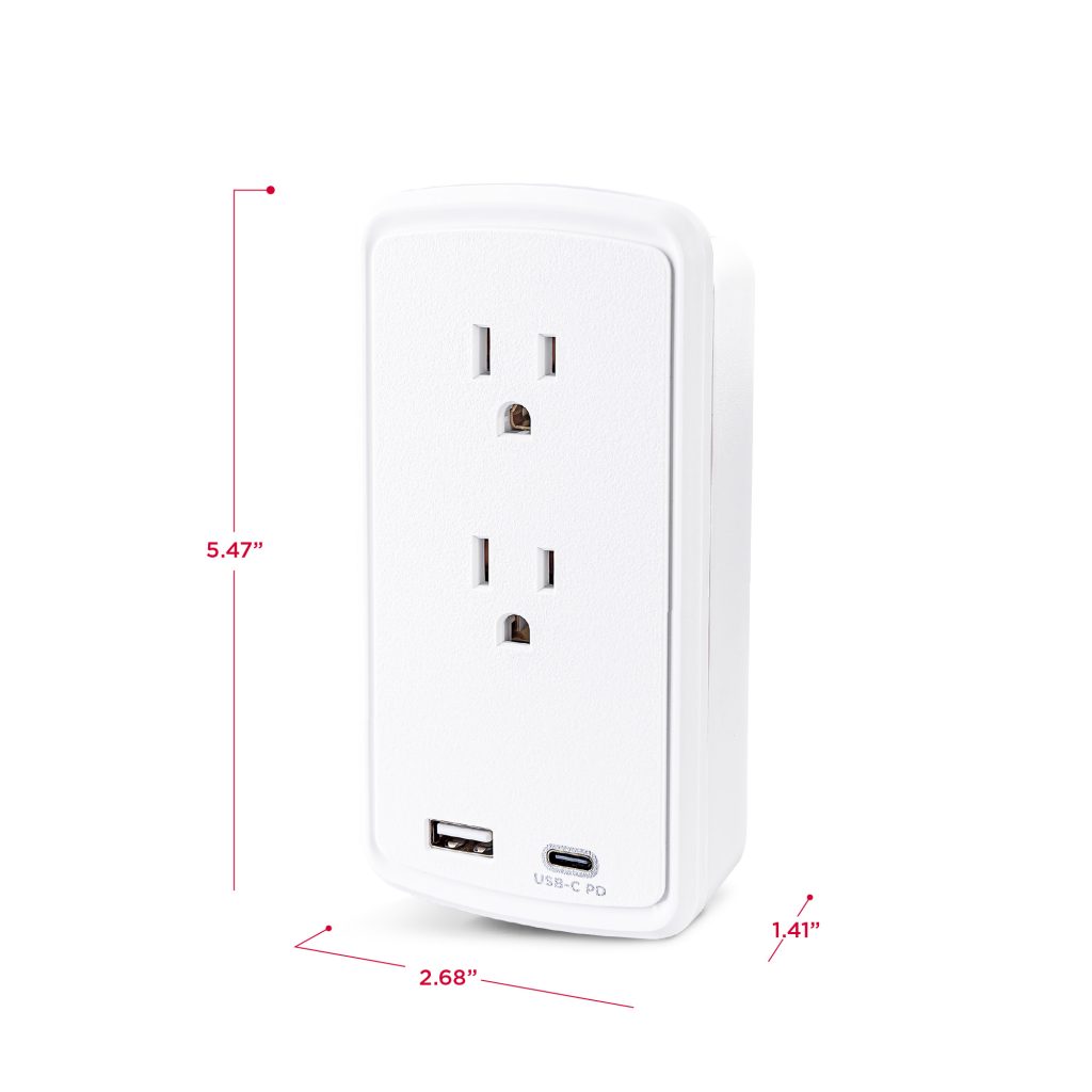 2 Outlet Wall Tap Surge Protector with USB