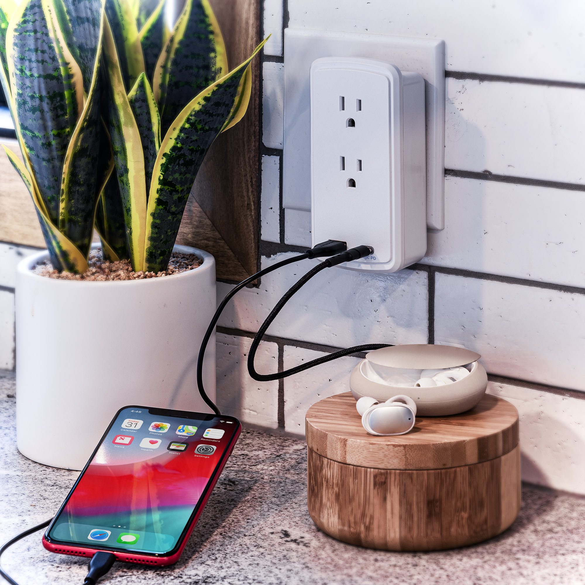 Manages devices and cords while charging. - Impact-Resistant Casing