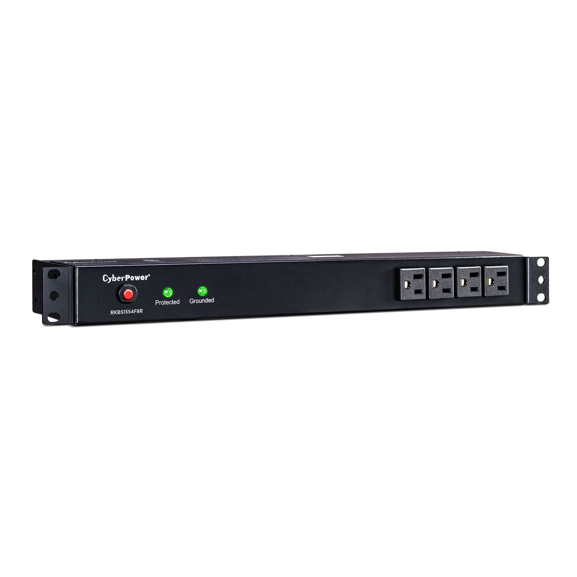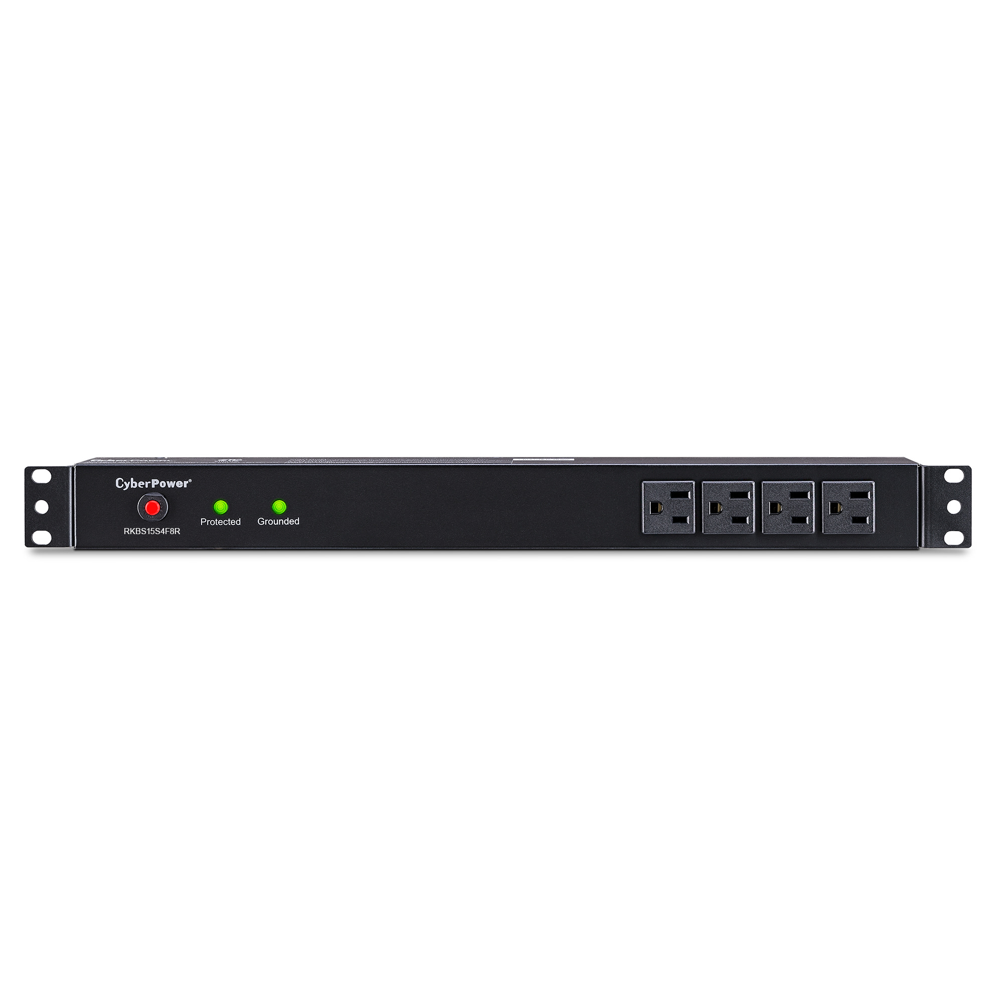 Engineered for the most demanding applications, the professional-grade Rackbar™ Surge Protector RKBS15S4F8R from CyberPower safeguards systems and networking equipment by absorbing spikes in energy caused by storms and electrical power surges. Designed for network environments, the RKBS15S4F8R also performs superbly for home office use, providing 3600 joules of protection, 15-Amp electrical capacity with circuit breaker, and 12 surge-protected outlets (4 front, 8 rear). Industrial-grade metal housing keeps this Rackbar performing flawlessly. Two sets of mounting brackets provide flexible installation options: 1U rackmount (19 in.); 0U vertical rackmount and under-counter configurations.