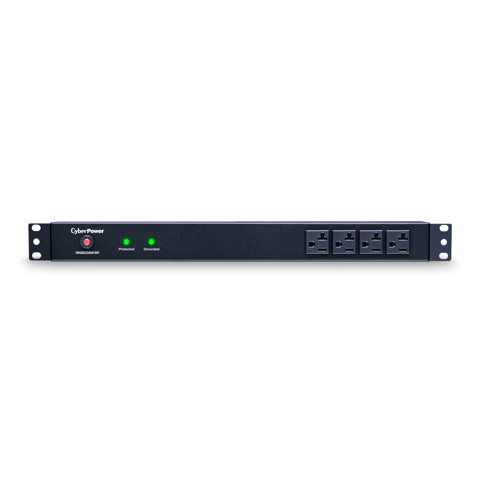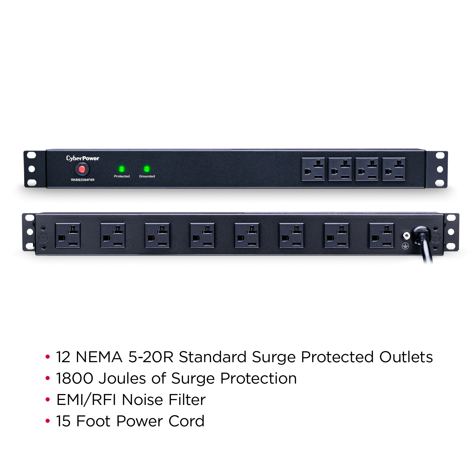 Engineered for the most demanding applications, the professional-grade Rackbar™ Surge Protector RKBS20S4F8R safeguards systems and networking equipment by absorbing spikes in energy caused by storms and electrical power surges. Designed for network environments, the RKBS20S4F8R also performs superbly for home office use, providing 1800 joules of protection, 20-amp electrical capacity with circuit breaker, and 12 surge-protected outlets (4 front, 8 rear). Industrial-grade metal housing keeps this Rackbar performing flawlessly. Two sets of mounting brackets provide flexible installation options: 1U rackmount (19 in.); 0U vertical rackmount and under-counter configurations.
