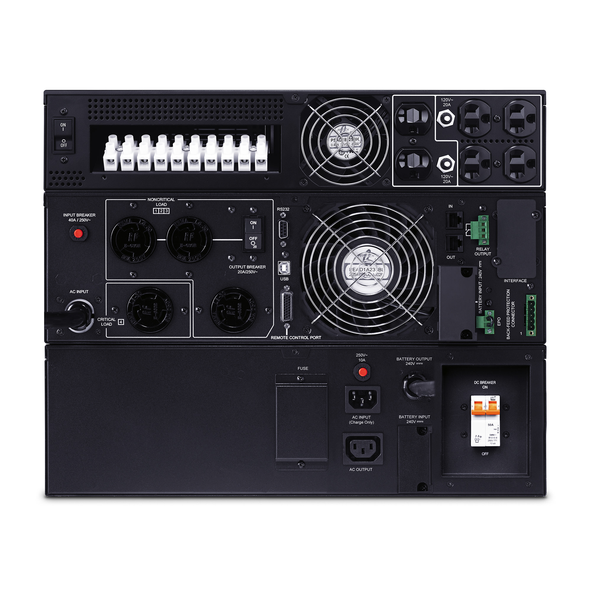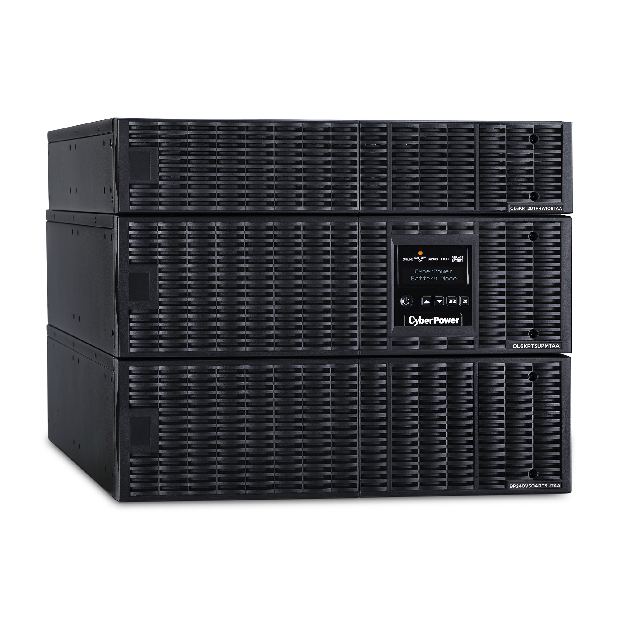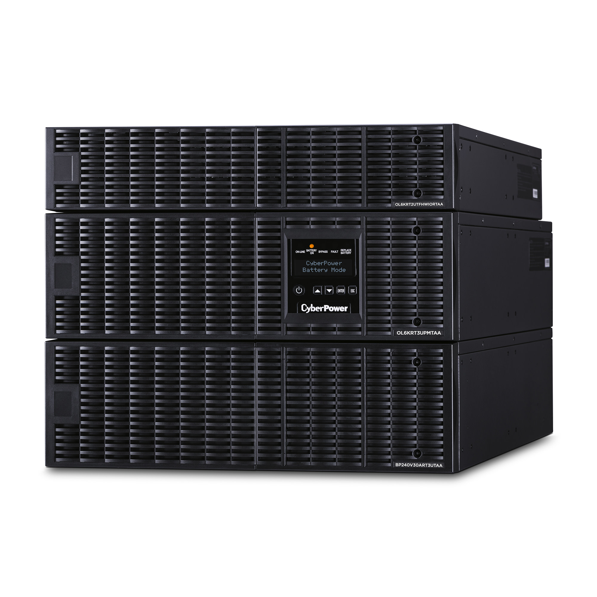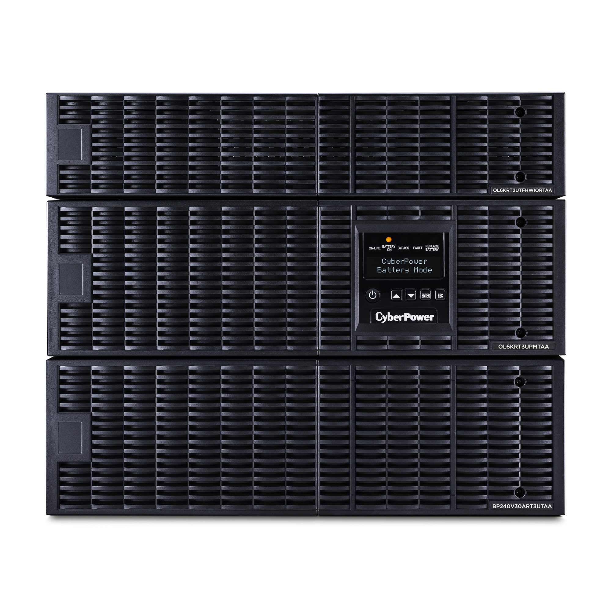 The CyberPower Smart App Online OL6000RT3UTFTAA is a rack/tower UPS with double-conversion topology and a step-down transformer to support 120V and 200-240V output requirements. It provides sine wave output to mission-critical applications and equipment requiring seamless power protection. This model comes with an extendable LCD control panel, Smart Battery Management charging design, Fast Charge Technology, and energy-saving GreenPower UPS™ ECO Mode. The OL6000RT3UTFTAA offers generator compatibility and delivers clean AC power with zero transfer time. This model can use the BP240V30ART3UTAA Extended Battery Module for expanded runtime and faster restoration of full backup power. The OL6000RT3UTFTAA comes with a three-year warranty and a $300,000 Connected Equipment Guarantee.