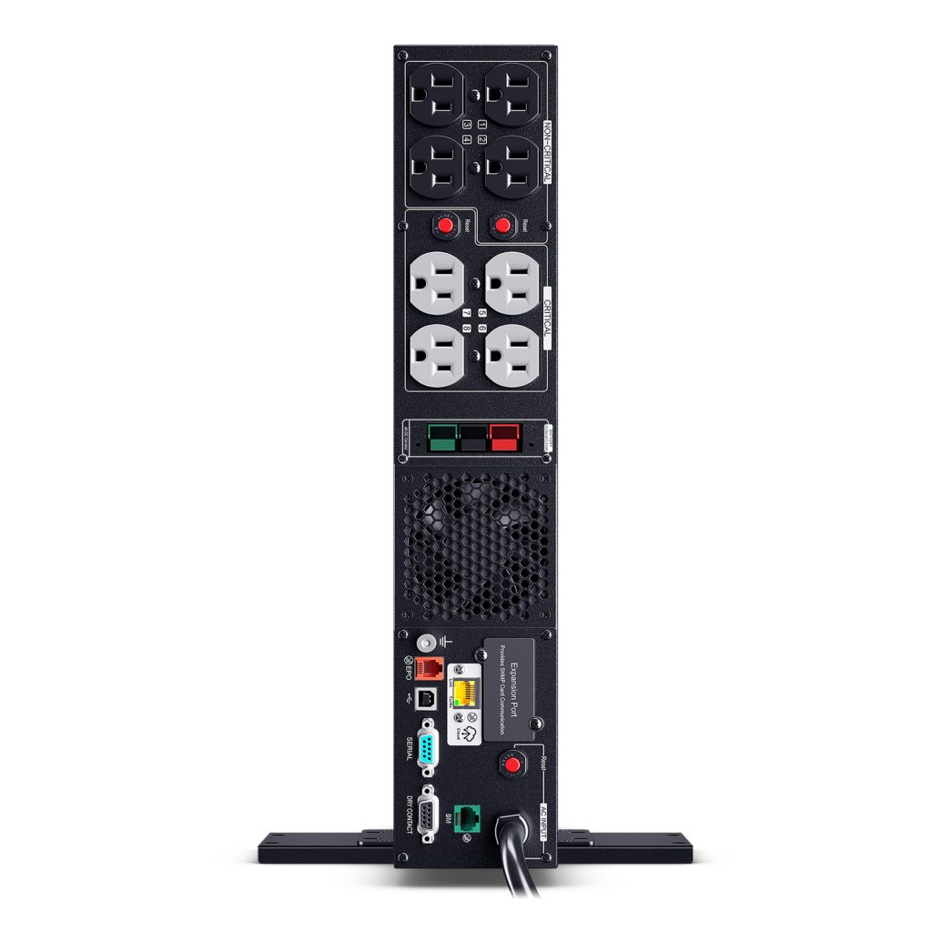 The PR1500RTXL2UCTAA is a Smart App Sinewave rack/tower convertible UPS with line-interactive topology, surge protection, and battery backup. CyberPower’s Smart App Sinewave series has sine wave output to eliminate power gaps that can be detected by sensitive equipment and cause unexpected shutdowns.