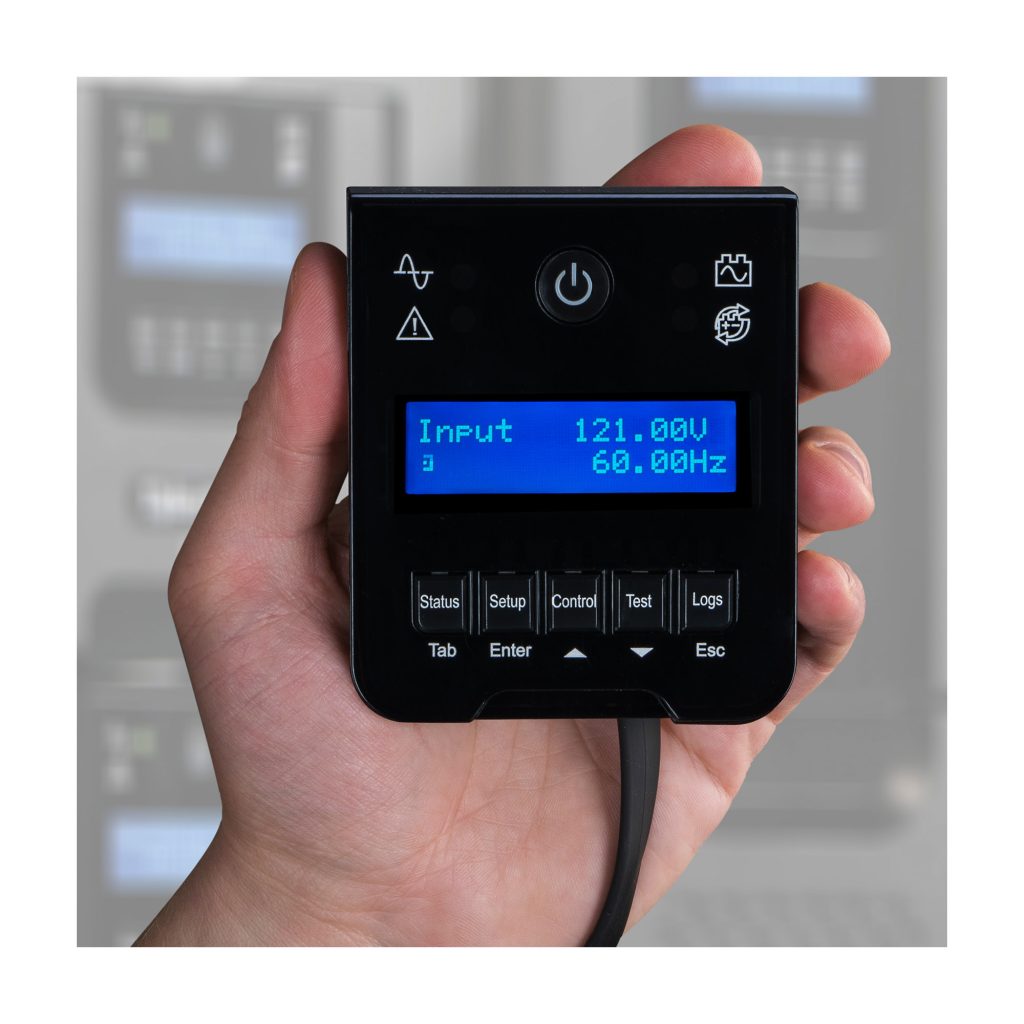 Can be removed and relocated for easy viewing using the attached 4.5 ft. cable. This feature provides easy access to view status or change settings on the UPS when it’s installed in a hard to reach area such as the bottom of a rack, under a desk, in a crowed IT closet, or on the floor.