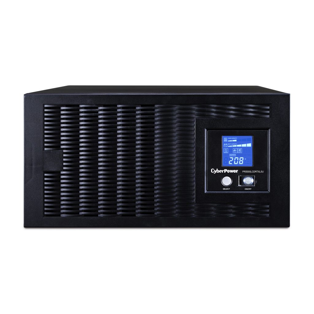 The CyberPower Smart App Sinewave PR5000LCDRTXL5UTAA is a rack/tower convertible UPS with line interactive topology. It complies with the U.S. Trade Agreement Act (TAA). This model provides battery backup, power protection (using sine wave output), and surge protection for corporate servers, department servers, storage appliances, network devices, and telecom installations requiring Active PFC power source compatibility.