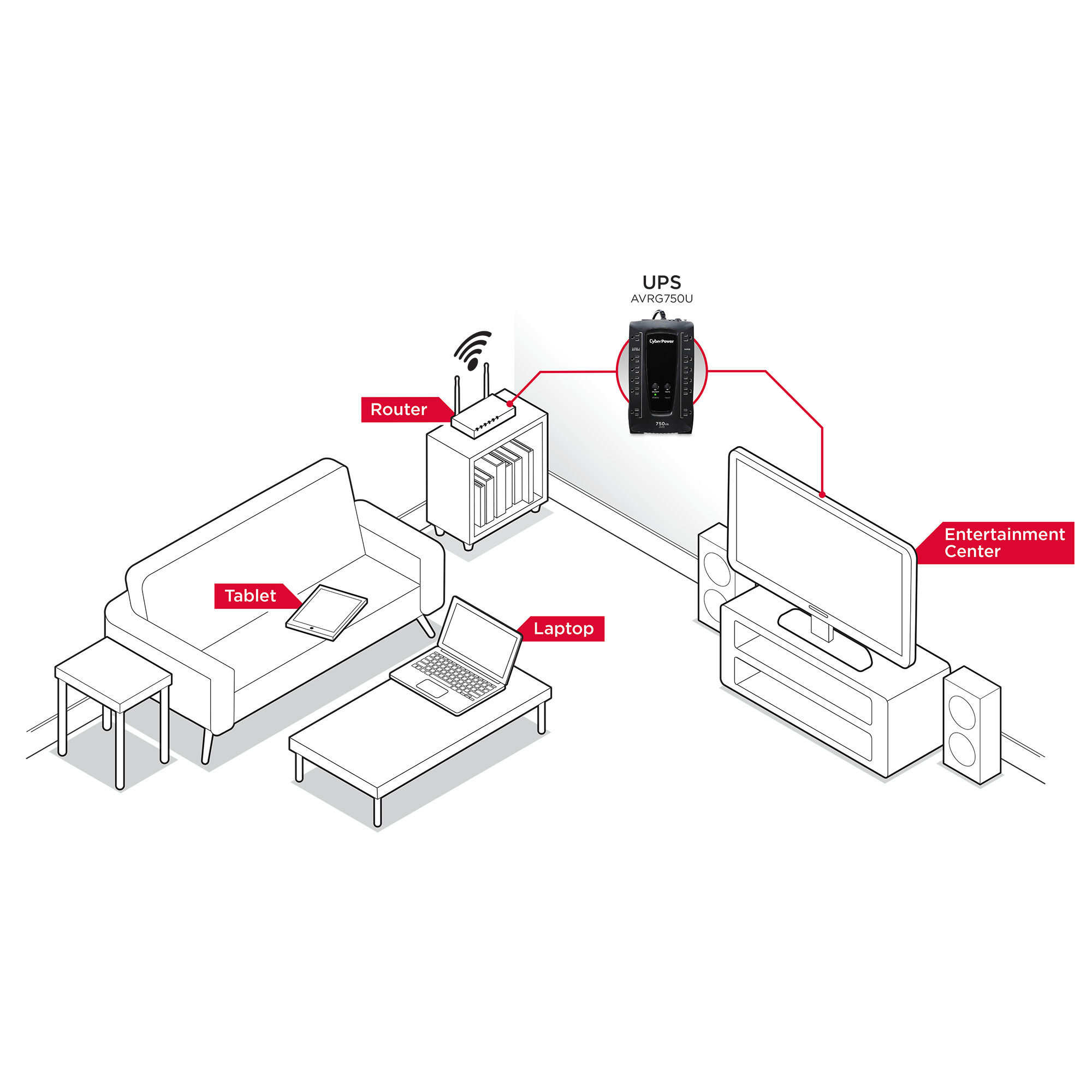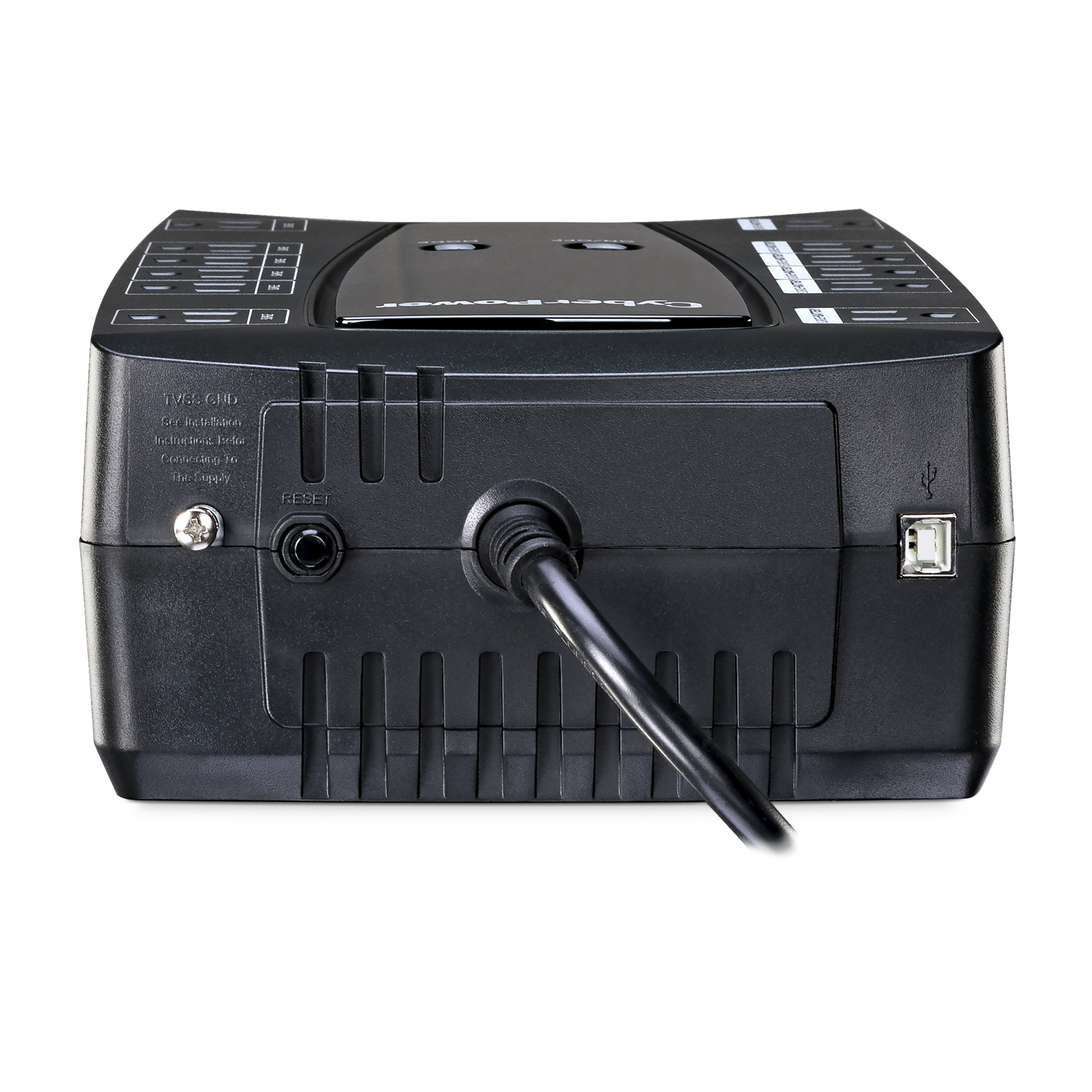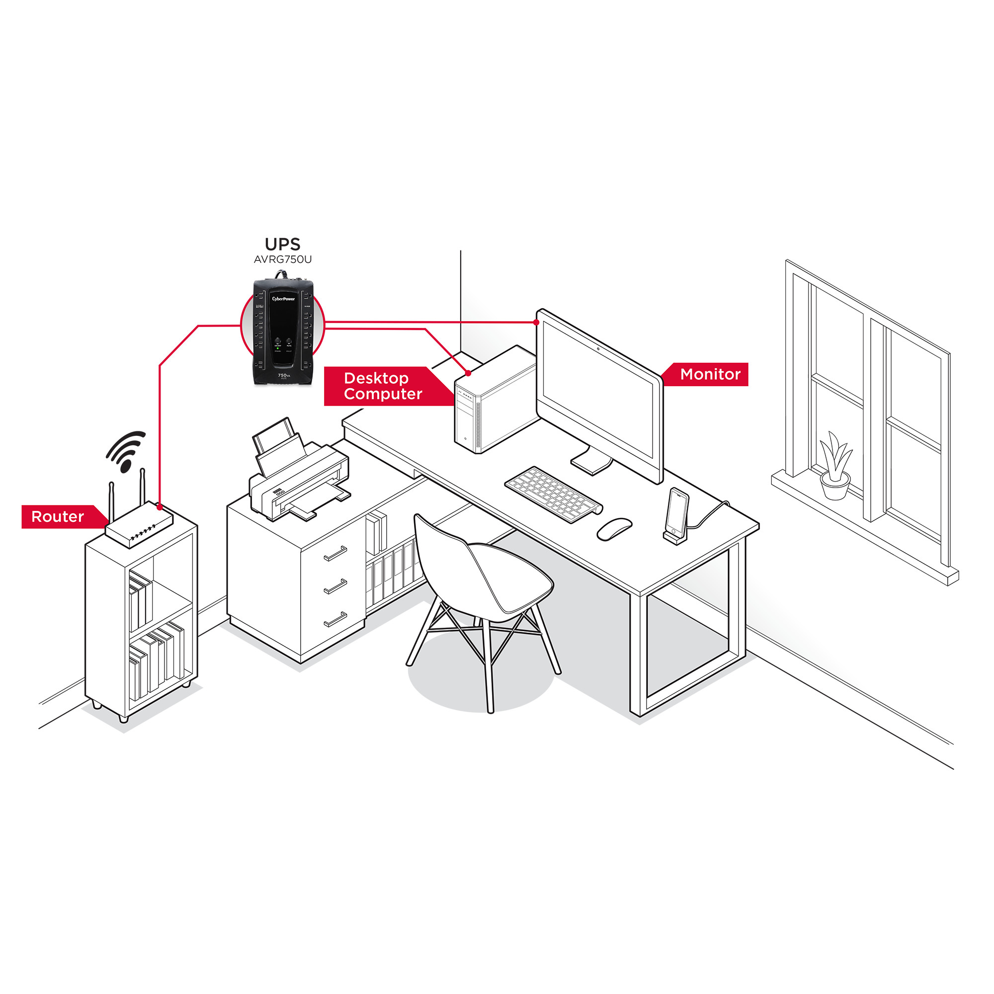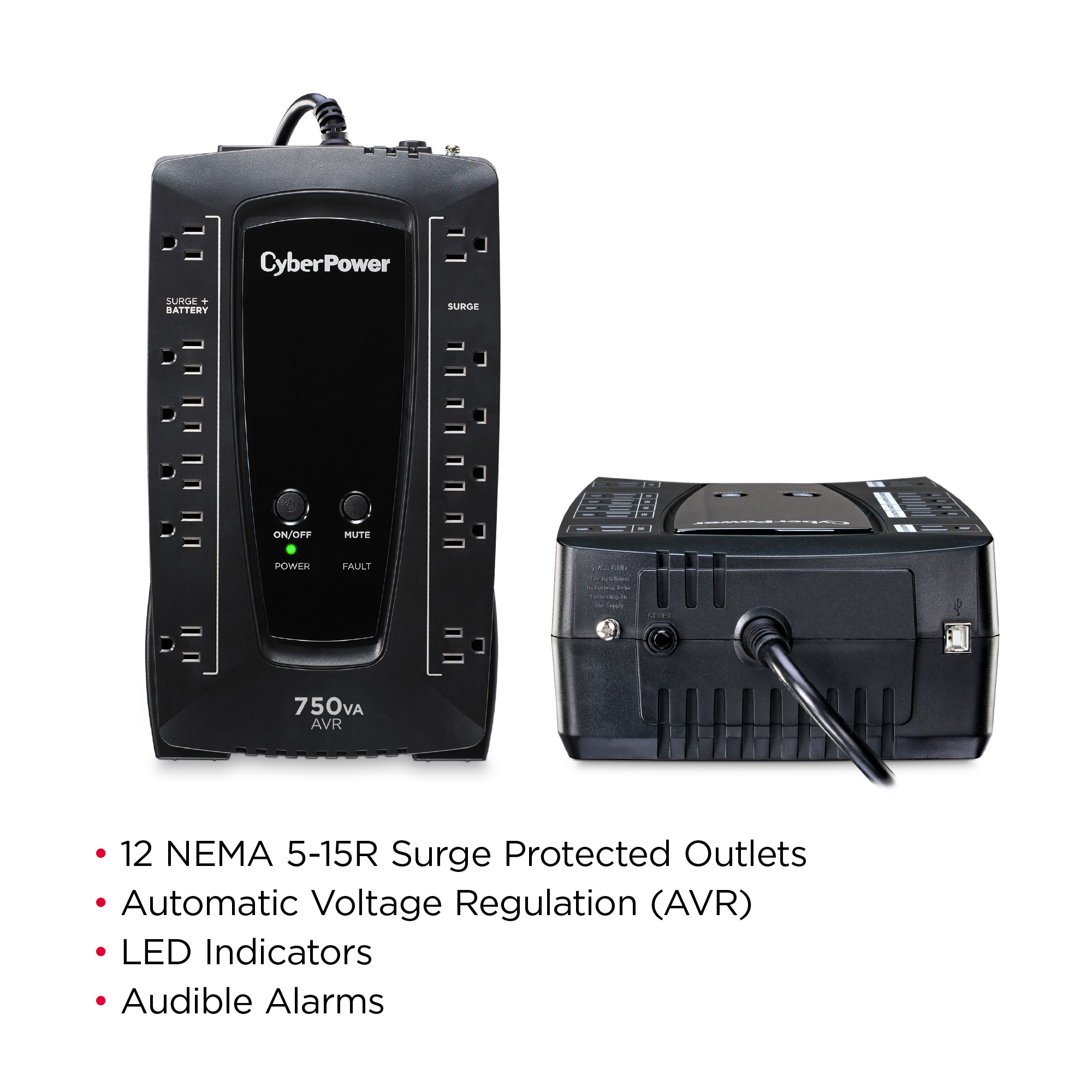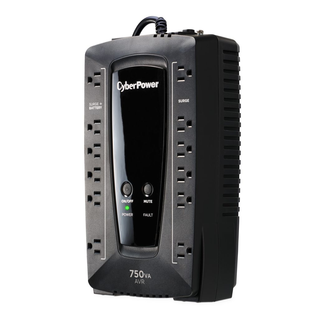 A compact UPS with line interactive topology, the CyberPower AVRG750U provides battery backup (using simulated sine wave output) and surge protection for desktop computers, workstations, networking devices, and home entertainment systems. The AVRG750U uses Automatic Voltage Regulation (AVR) to correct minor power fluctuations without switching to battery power, which extends battery life. AVR is essential in areas where power fluctuations occur frequently. The AVRG750U comes with a three-year warranty (including coverage of batteries) and a $150,000 Connected Equipment Guarantee.