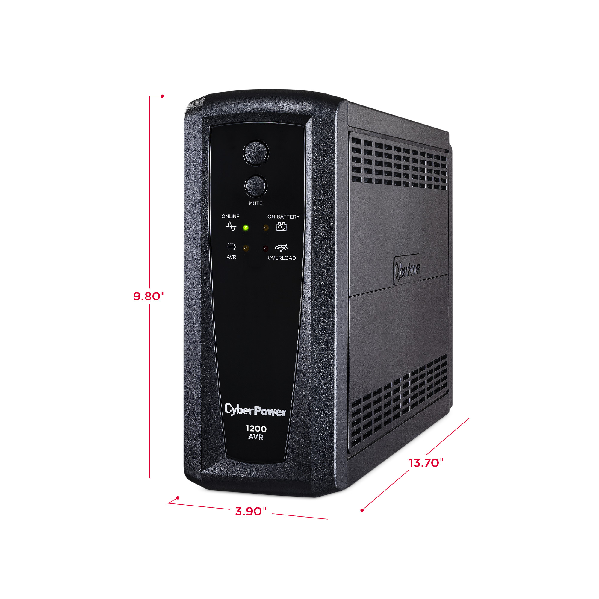 A mini-tower UPS with line interactive topology, the CyberPower AVR Series CP1200AVR provides battery backup (using simulated sine wave output) and surge protection for desktop computers, workstations, networking devices, and home entertainment systems. During longer power outages, the CP1200AVR delivers enough battery backup power to perform a graceful shutdown to protect against the loss of data and damage to electronics. It uses Automatic Voltage Regulation (AVR) to correct minor power fluctuations without switching to battery power, which extends battery life. AVR is essential in areas where power fluctuations occur frequently. The CP1200AVR comes with a three-year warranty (including coverage of batteries) and a $375,000 Connected Equipment Guarantee.