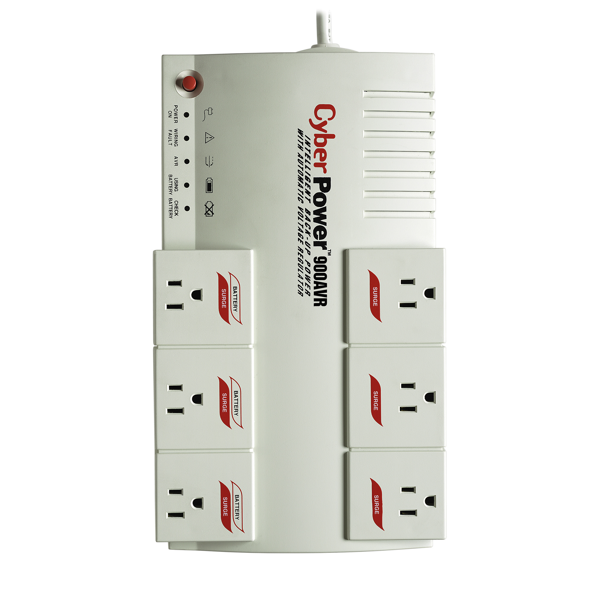 The CyberPower Systems CPS900AVR UPS provides battery backup (using simulated sine wave output) and surge protection for desktop computers, workstations, and personal electronics. The CPS900AVR uses Automatic Voltage Regulation (AVR) to correct minor power fluctuations without switching to battery power, which extends battery life. AVR is essential in areas where power fluctuations occur frequently. The CPS900AVR comes with a three-year warranty (including coverage of batteries) and a $250,000 Connected Equipment Guarantee.