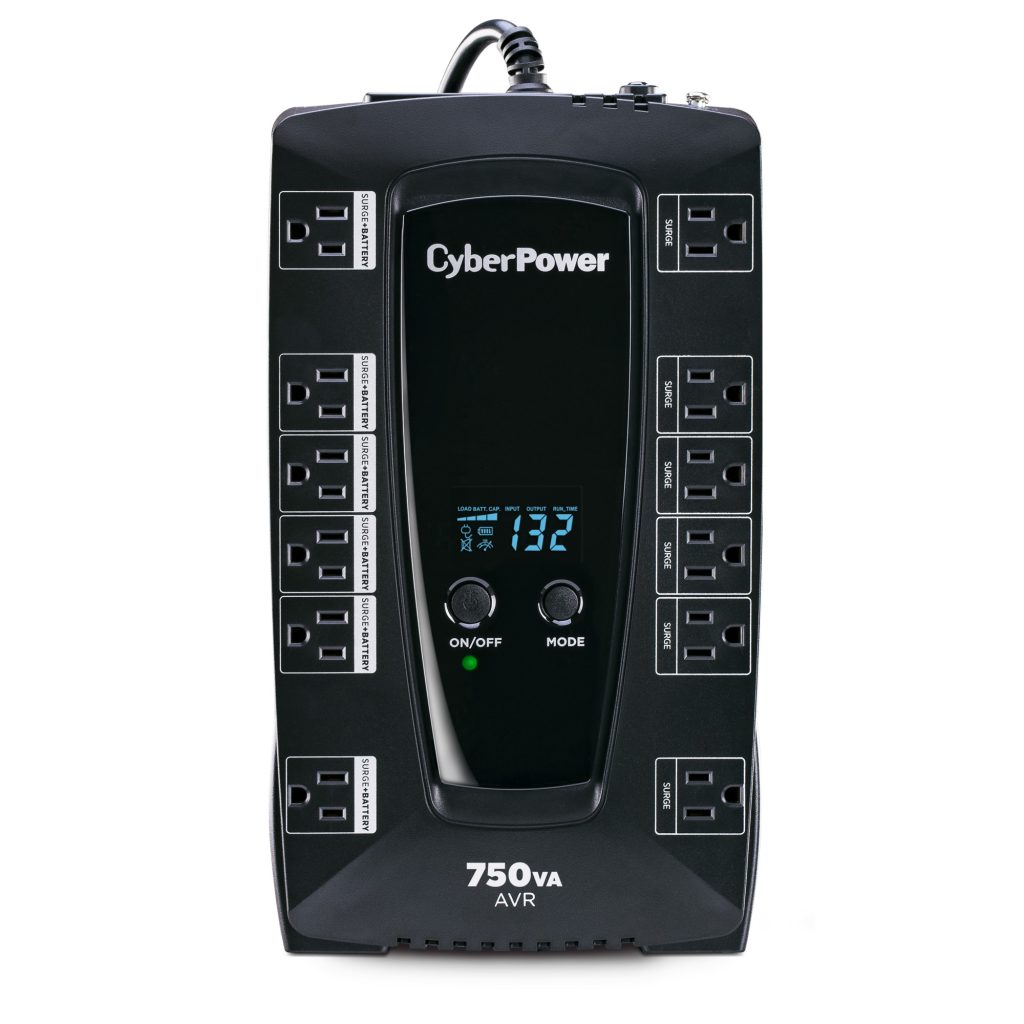 A compact UPS with line interactive topology, the CyberPower AVRG750LCD provides battery backup (using simulated sine wave output) and surge protection for desktop computers, workstations, networking devices, and home entertainment systems. The AVRG750LCD uses Automatic Voltage Regulation (AVR) to correct minor power fluctuations without switching to battery power, which extends battery life. AVR is essential in areas where power fluctuations occur frequently. The AVRG750LCD comes with a three-year warranty (including coverage of batteries) and a $150,000 Connected Equipment Guarantee.