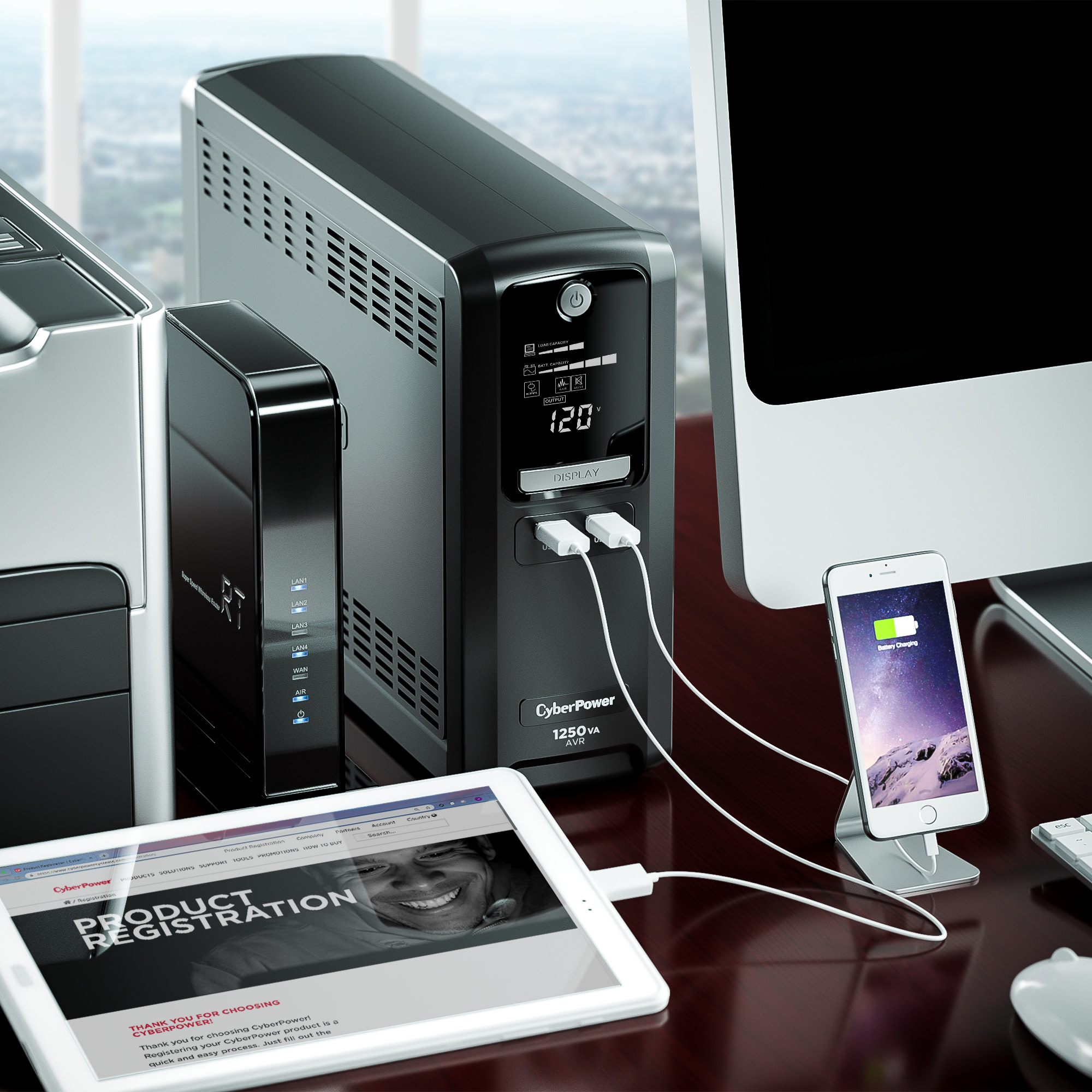 A mini-tower UPS with line interactive topology, the CyberPower BL1250U provides battery backup (using simulated sine wave output) and surge protection for desktop computers, workstations, networking devices, and home entertainment systems. The BL1250U uses Automatic Voltage Regulation (AVR) to correct minor power fluctuations without switching to battery power, which extends battery life. AVR is essential in areas where power fluctuations occur frequently.
