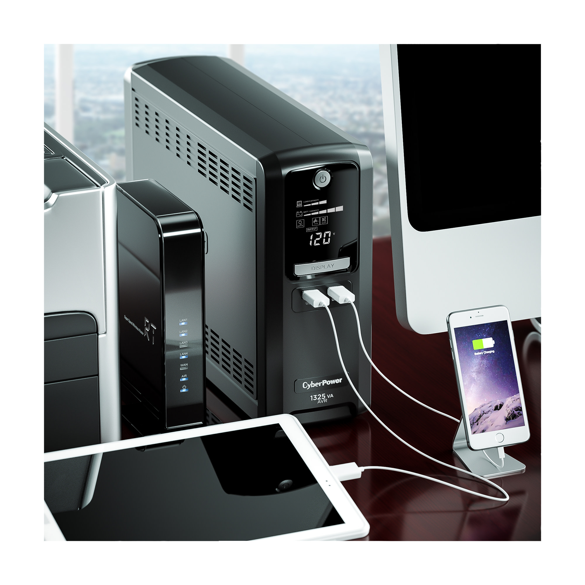 A mini-tower UPS with line interactive topology, the CyberPower Intelligent LCD CST135XLU provides battery backup (using simulated sine wave output) and surge protection for desktop computers, workstations, networking devices, and home entertainment systems. The CST135XLU uses Automatic Voltage Regulation (AVR) to correct minor power fluctuations without switching to battery power, which extends battery life. AVR is essential in areas where power fluctuations occur frequently.