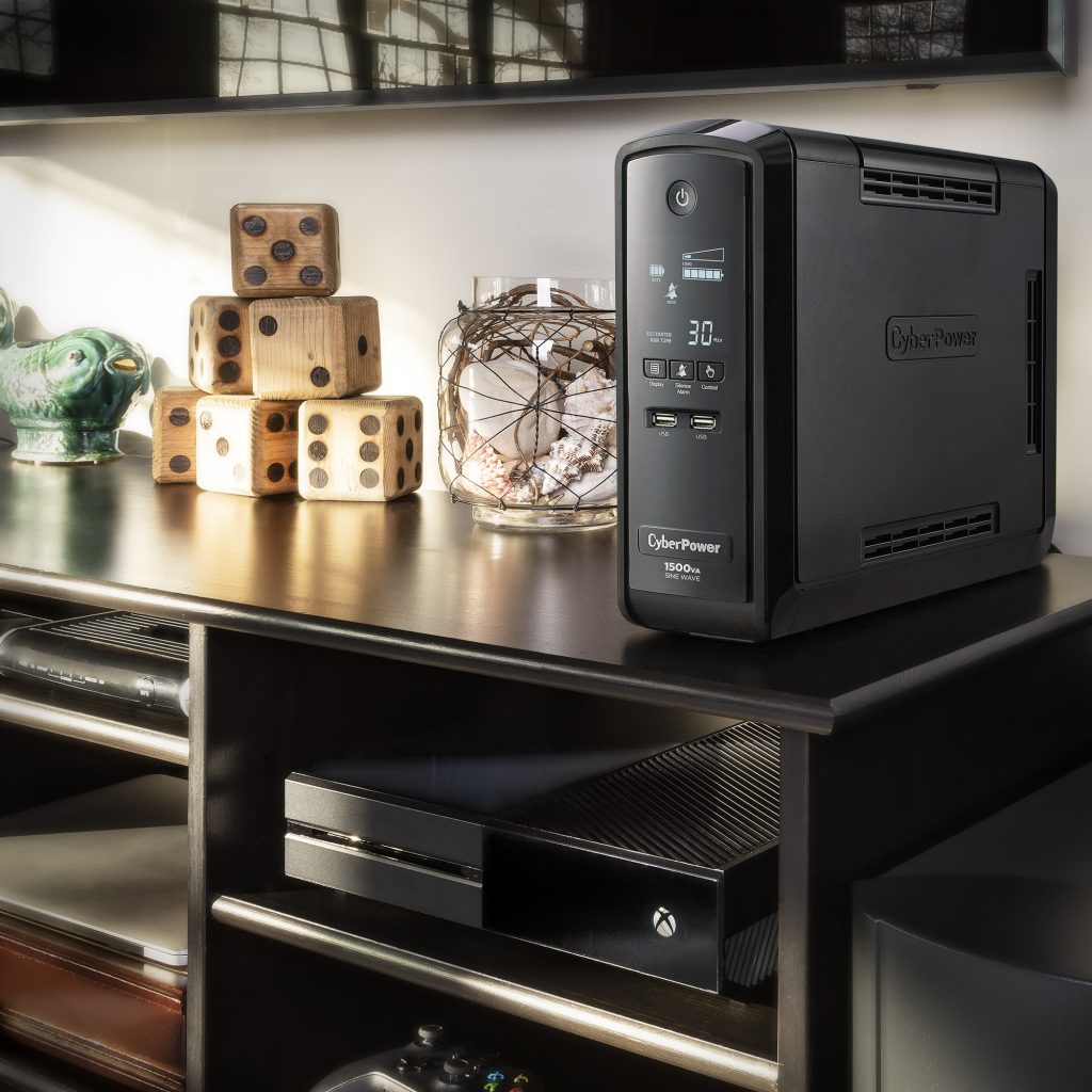 A mini-tower UPS with line interactive topology, the CyberPower CST1500S provides battery backup (using sine wave output) and surge protection for desktop computers, workstations, networking devices, and home entertainment systems requiring active PFC power source compatibility. The CST1500S uses Automatic Voltage Regulation (AVR) to correct minor power fluctuations without switching to battery power, which extends battery life. AVR is essential in areas where power fluctuations occur frequently.