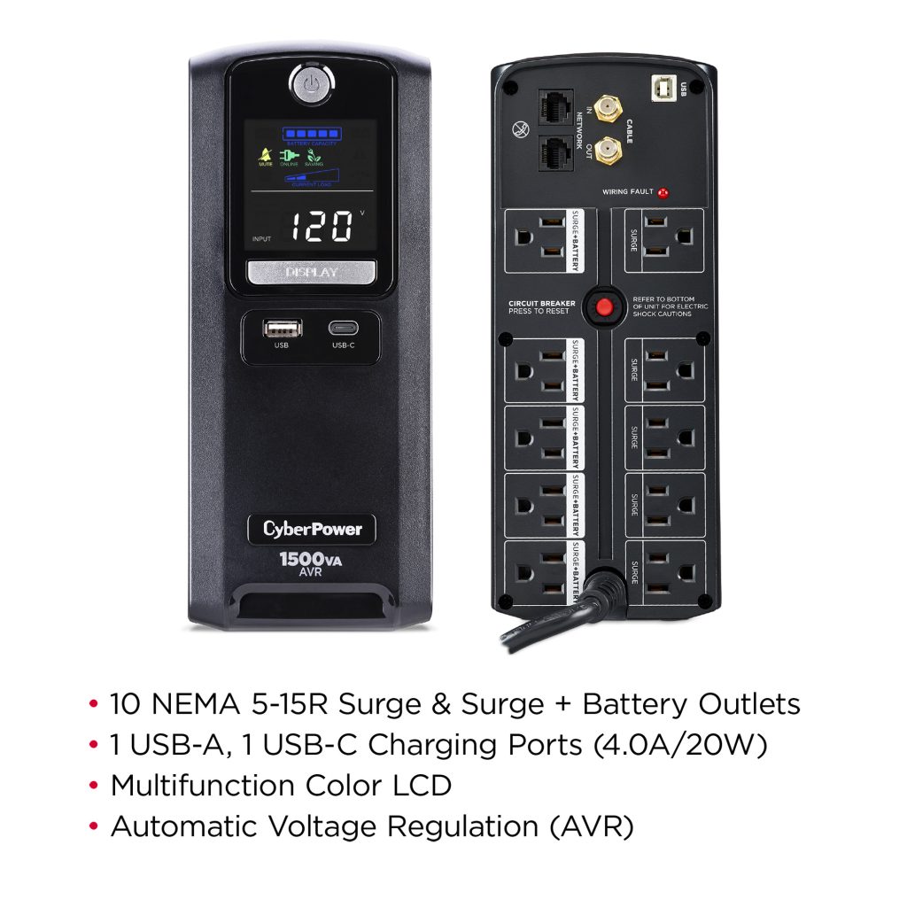 • Outlets: 10 (5 surge, 5 surge + battery backup)