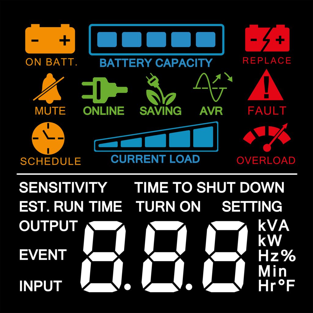 Displays immediate, detailed information on the UPS battery and power conditions.The color display quickly alerts users to potential problems before they can affect critical equipment and cause downtime. - Data Line Protection