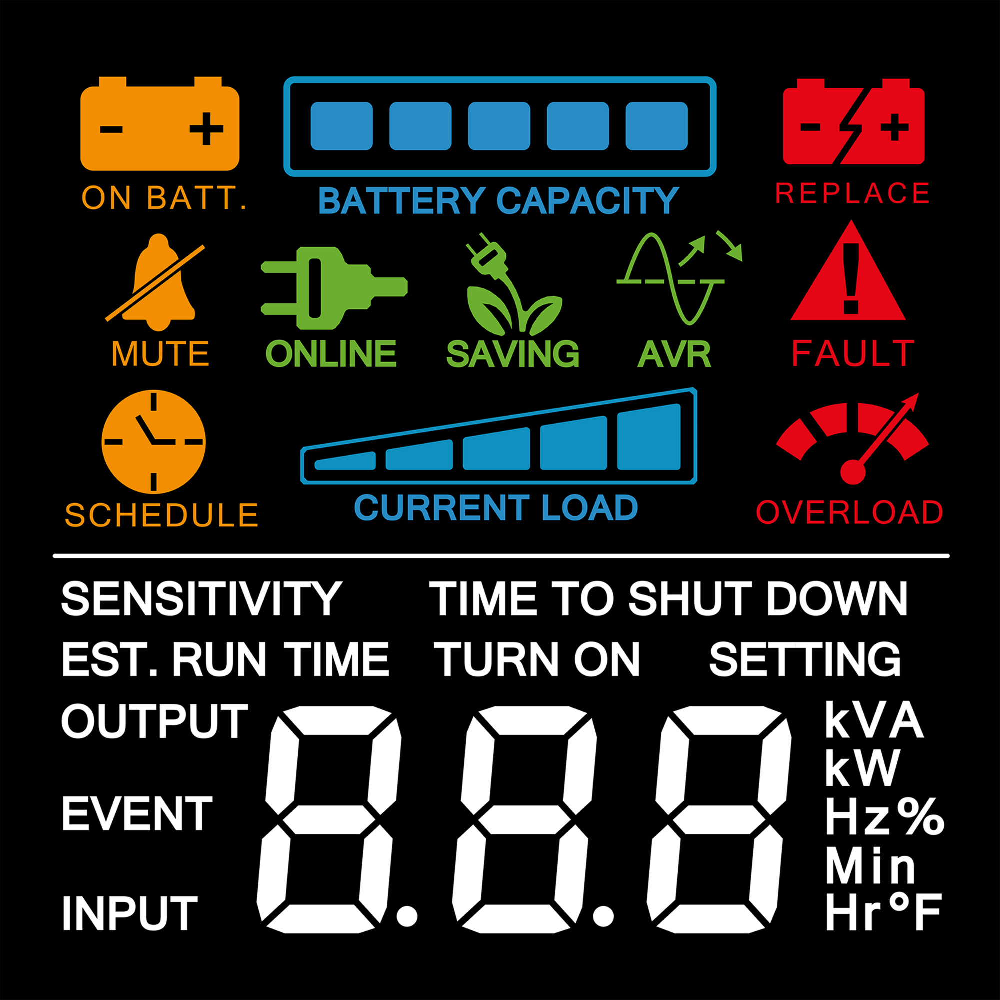 Rapidly charge and power USB devices whether the UPS is providing utility or battery backup power. - Multifunction LCD