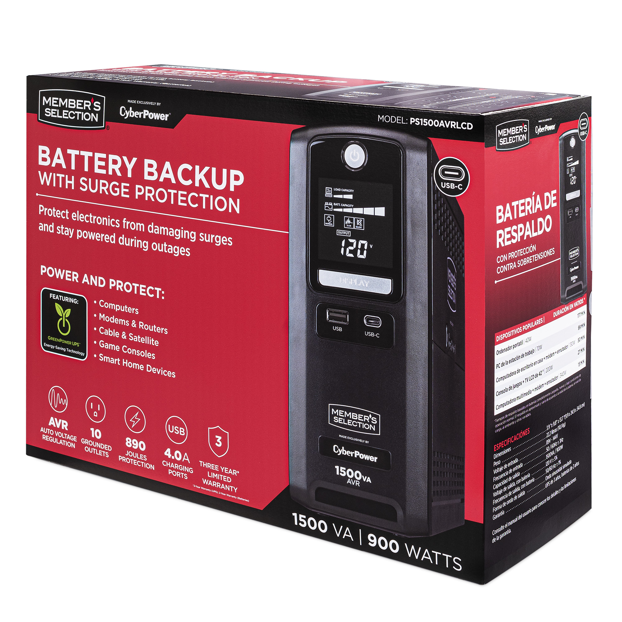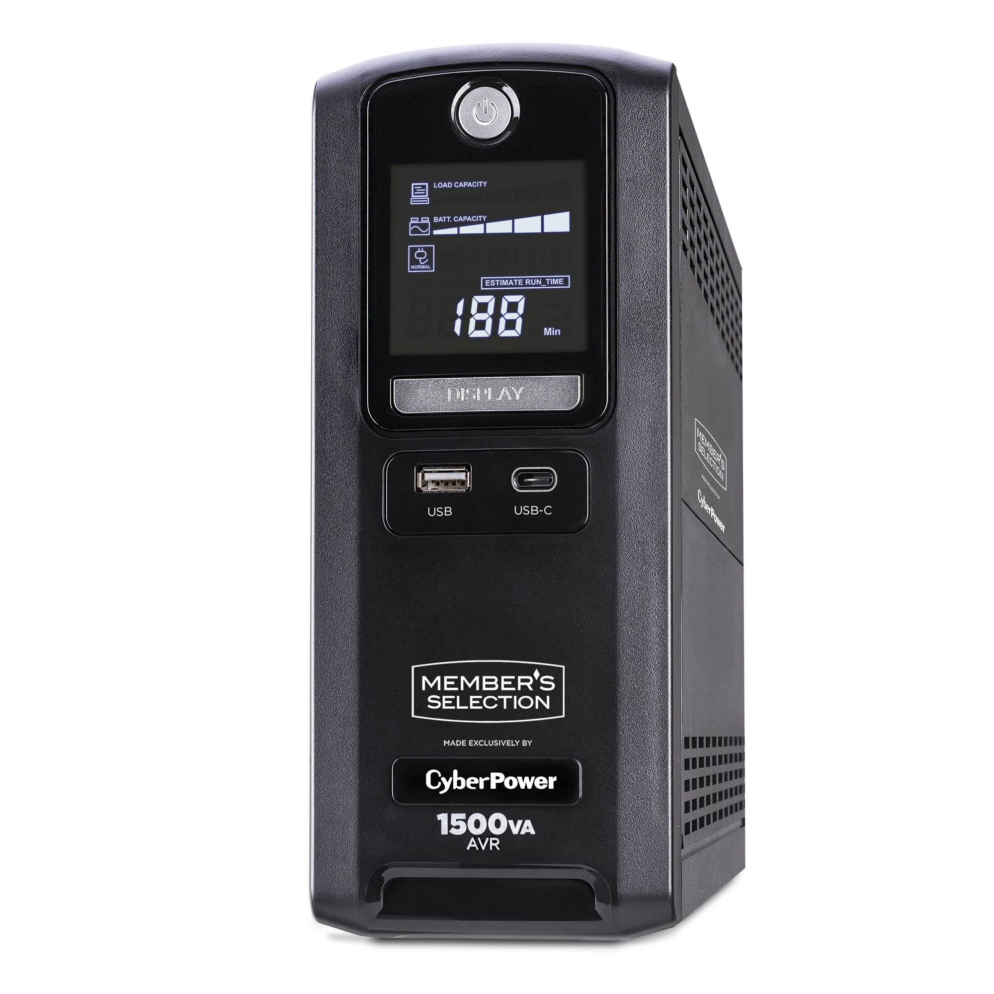 Two USB charge ports (one Type-A and one Type-C) power portable devices such as mobile phones and tablets, even during a utility power failure. The PS1500AVRLCD comes with a three-year warranty.