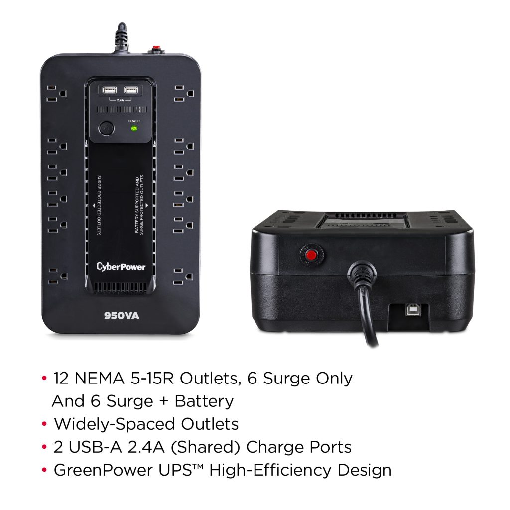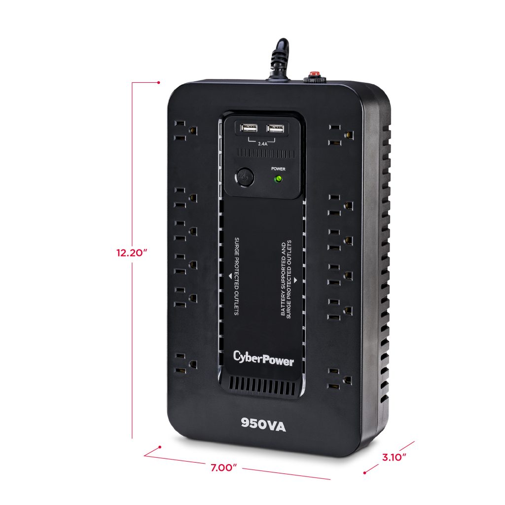 The SX950U-FC has two USB charging ports with 2.4 amp shared total output which gives you a faster charging time. This unit is designed to minimize noise for a quieter work environment and to run efficiently to reduce power consumption. Including a sleek new design, this UPS is perfect for all your home office and entertainment needs.