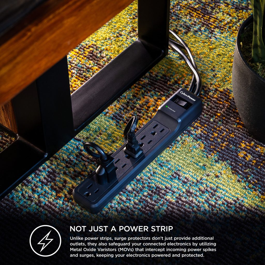 Maintains clean power for connected equipment by filtering out electromagnetic and radio frequency interference to improve picture and sound quality. - Metal Oxide Varistor (MOV) Technology