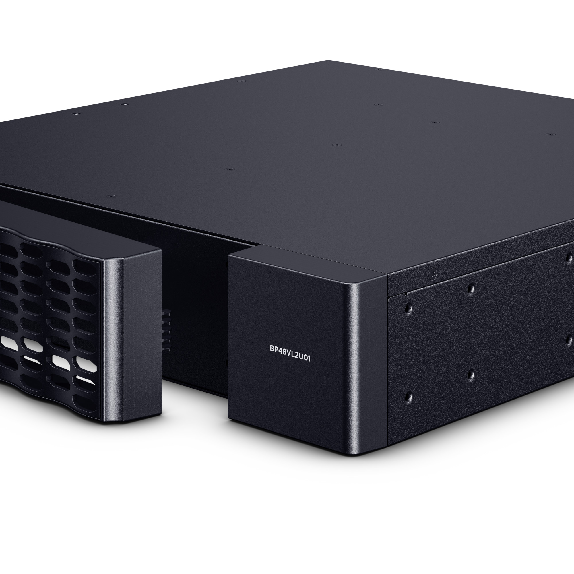 The BP48VL2U01 takes 2U of rack space and can be installed in a rack or tower configuration to match the UPS form factor. Toolless front panel removal makes battery replacement easier. This unit comes with a three-year warranty.