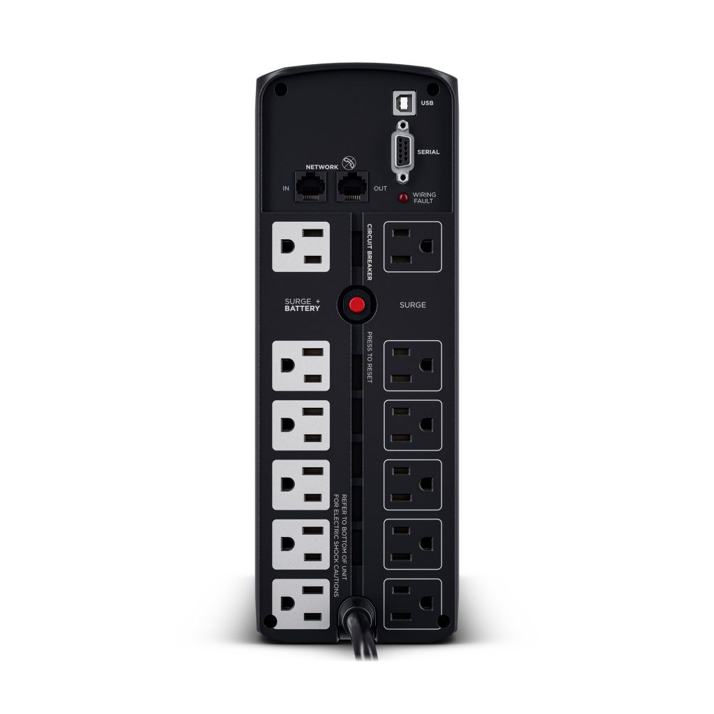 Many CyberPower UPS units have two sets of outlets. One set is labeled “Battery/Surge” and one set is labeled “Surge”. The outlets labeled “Battery/Surge” are the outlets that will receive battery power during a power failure. You should plug your computer and monitor into these outlets and any externally powered critical data storage device.