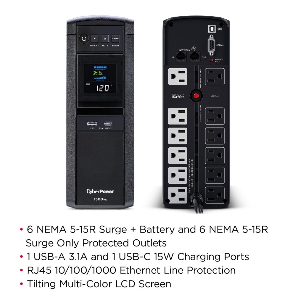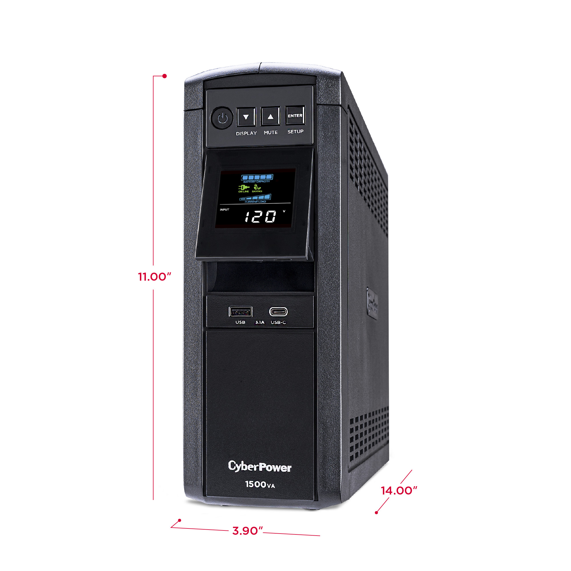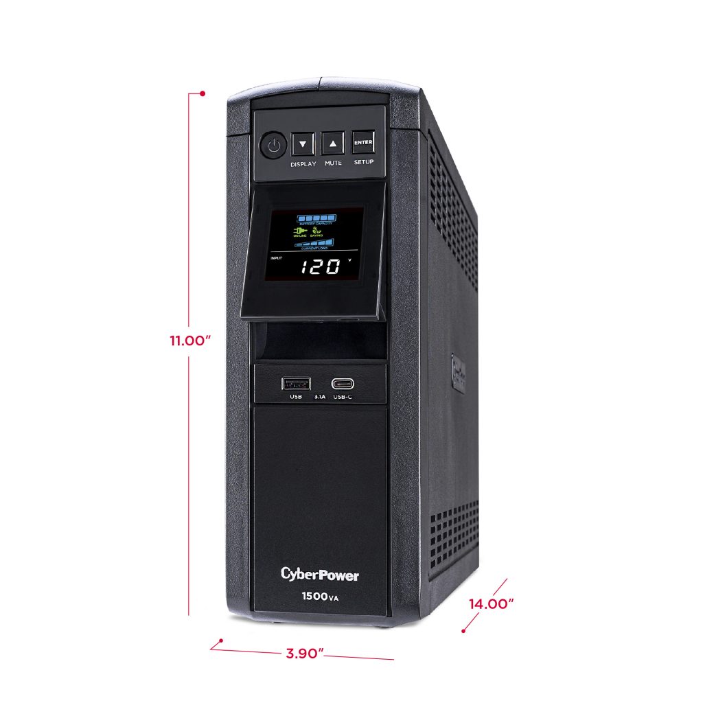 A mini-tower UPS with line interactive topology, the CyberPower GX1500U provides battery backup (using sine wave output) and surge protection for high end desktop computers, TVs, home theater equipment, gaming systems, and networking devices requiring active PFC power source compatibility.
