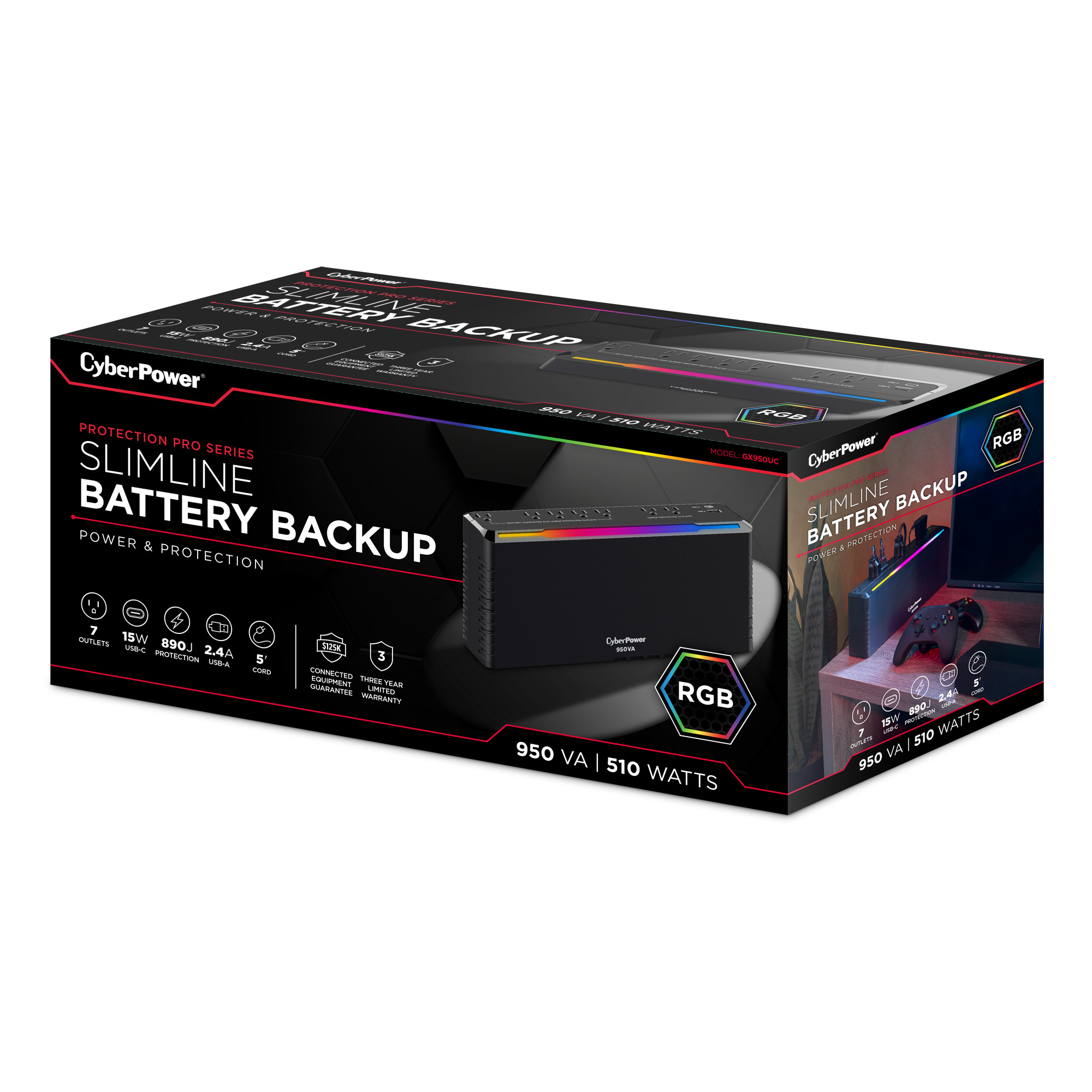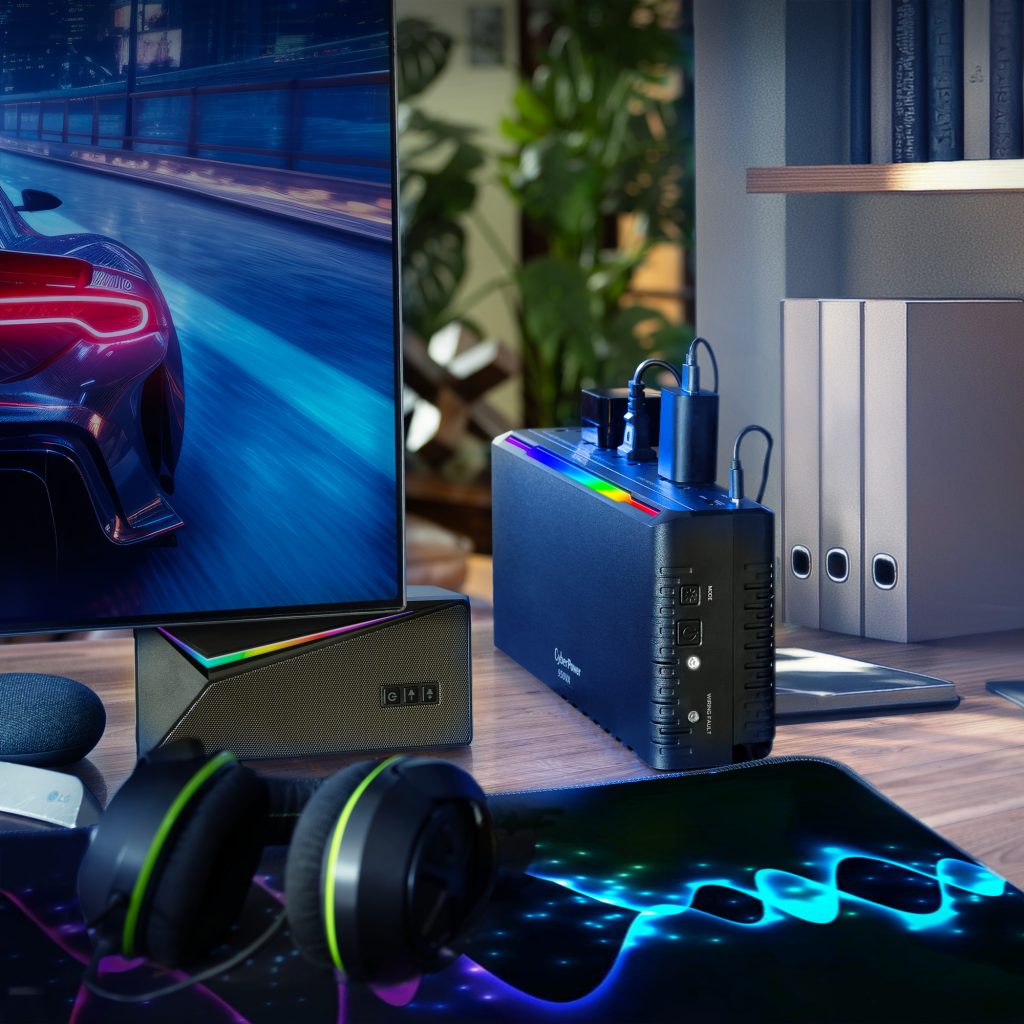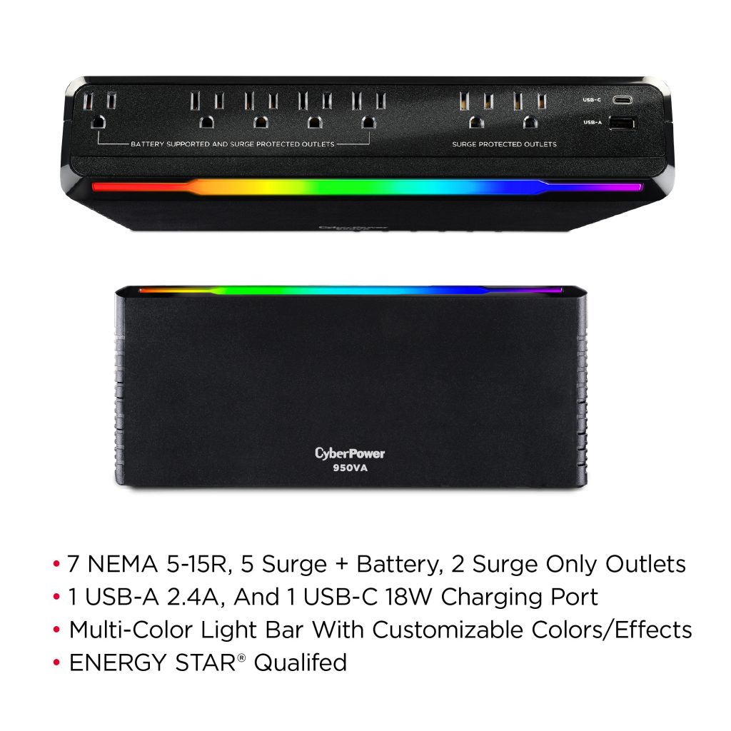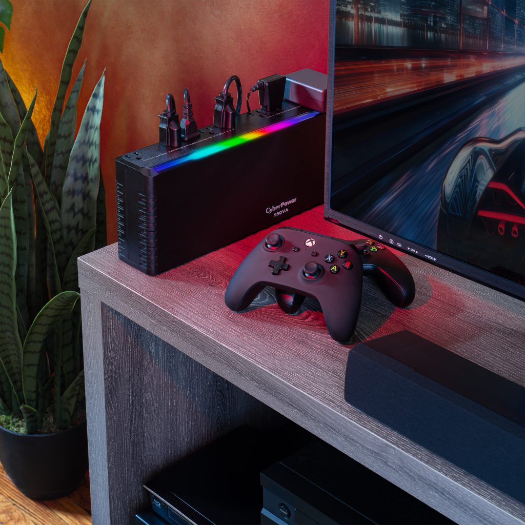 The CyberPower GX950UC uninterruptible power supply (UPS) is designed to protect console gaming systems by providing reliable battery backup and surge protection. In the event of a power outage, it supplies enough power to let you keep playing through brief interruptions or safely shut down your console during a longer outage—helping to prevent game progress loss and protect your hardware. It also shields connected devices, such as home theater systems and networking equipment, from lightning strikes and other harmful power surges.