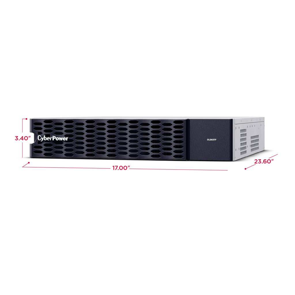 The OL5KSTF has a capacity of 5,000 VA / 5,000 Watts. It features twelve (12) NEMA 5-20R receptacles that can support output to NEMA 5-15P and 5-20P plug power cords.